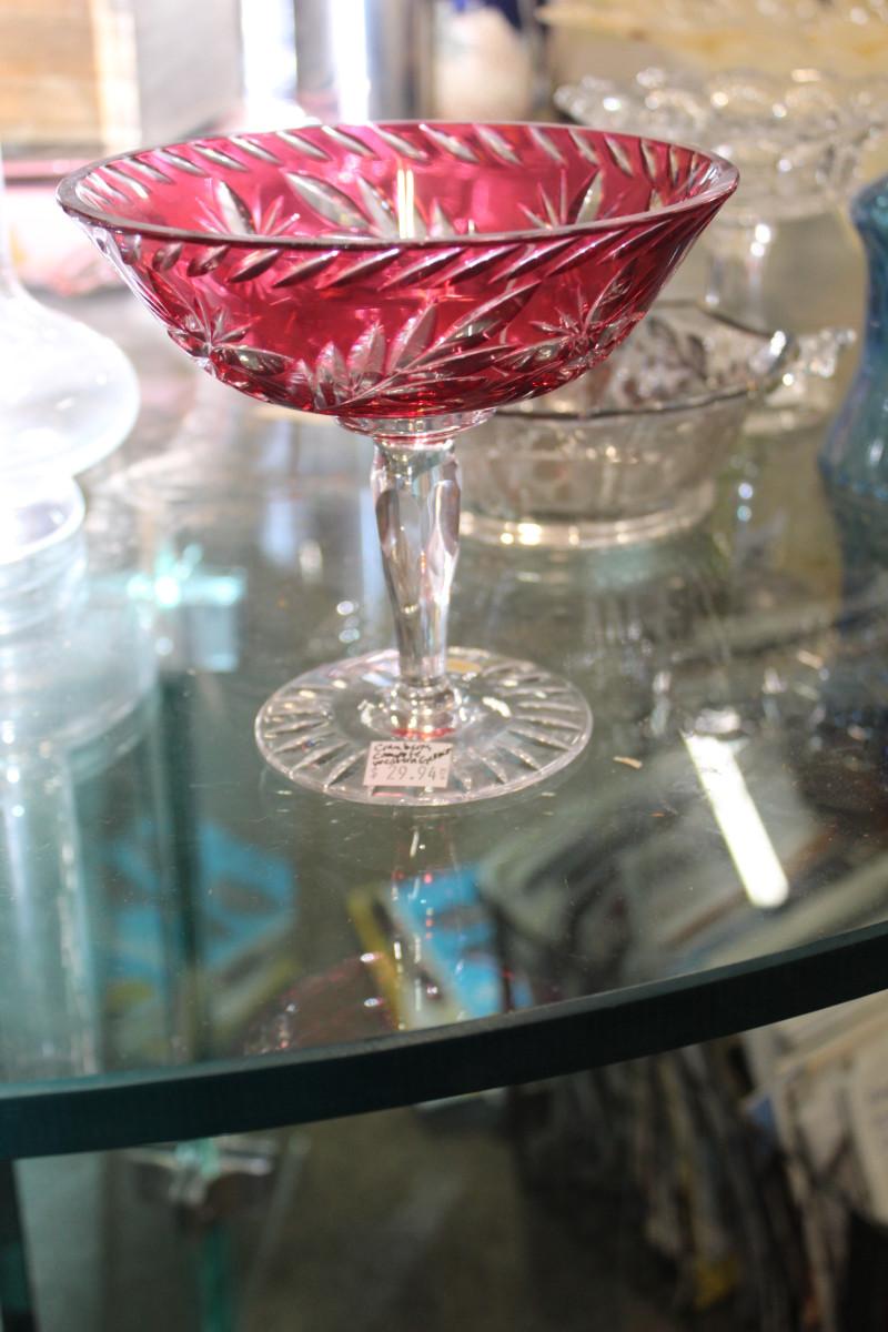 Vintage Czech Glass Cranberry Cut to Clear Cocktail or Champagne Glass