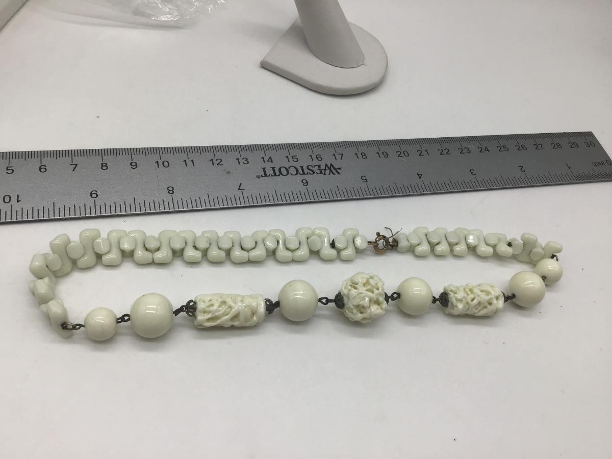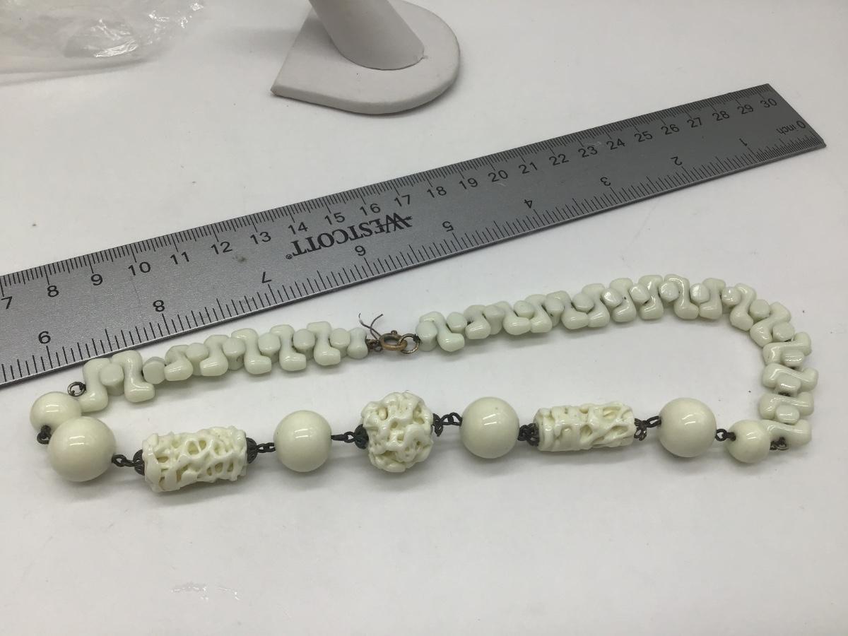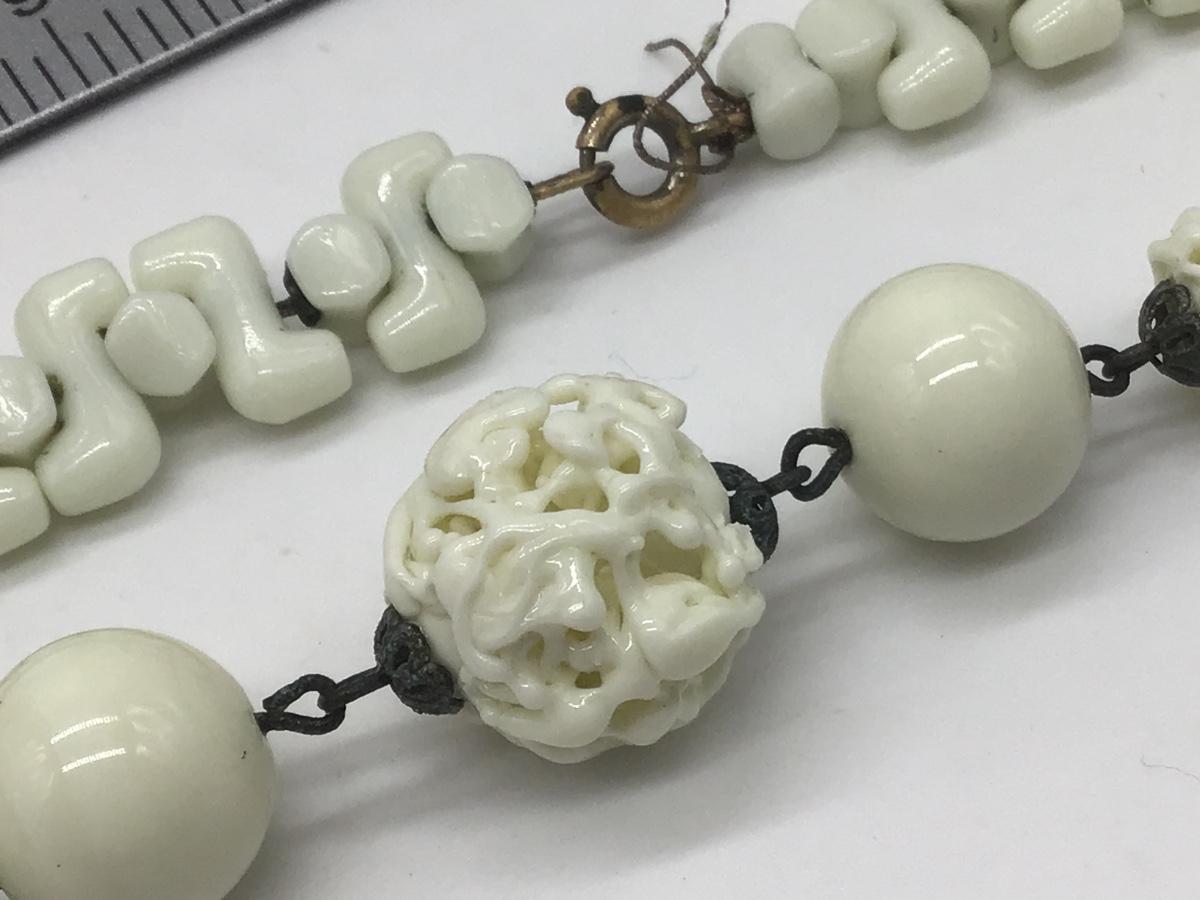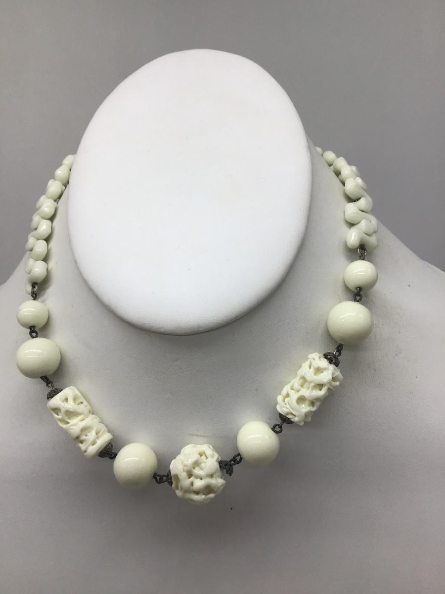 Vintage Czech Milk Glass Puzzle Beads Choker Necklace