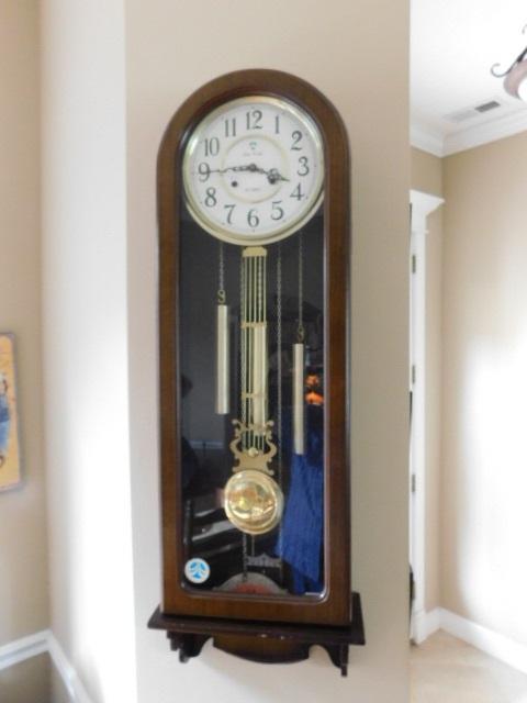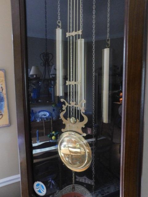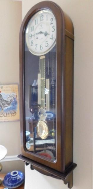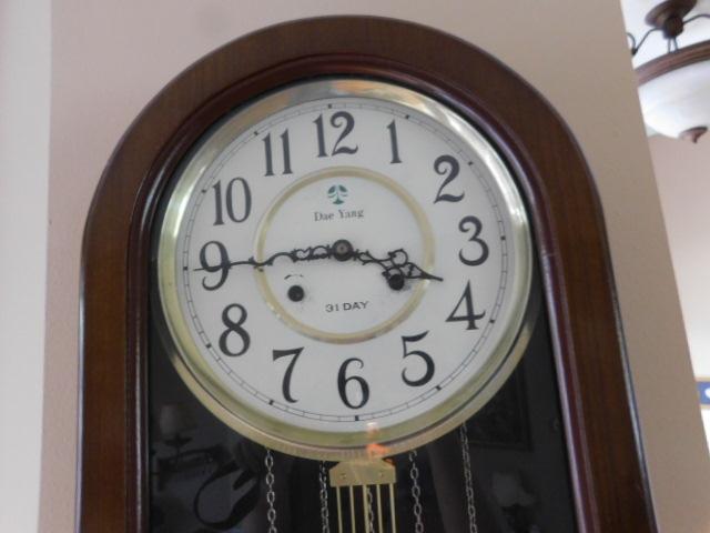 Vintage DaeYang 31 Day Pendullum Clock 42"x15" has small chip at base as shown