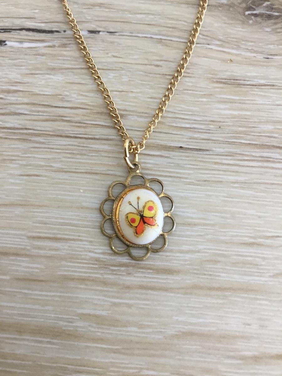 Vintage dainty gold tone butterfly pendant and necklace