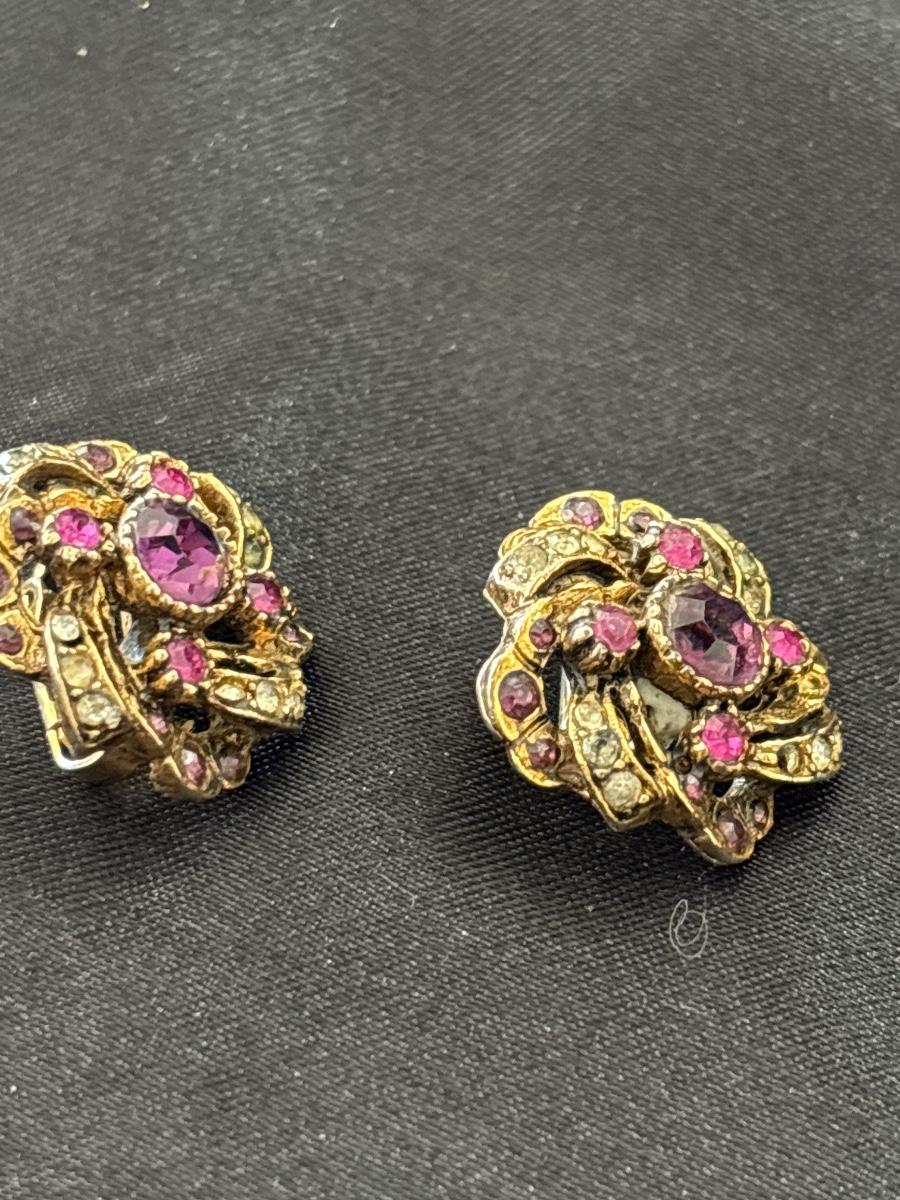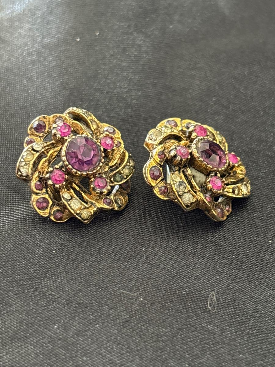 Vintage Dainty Retro Rhinestone earrings clip on