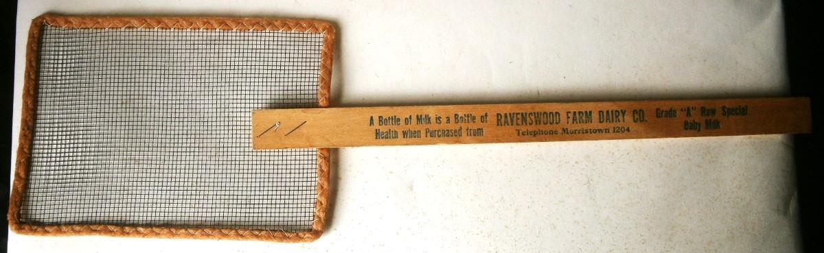 RAVENSWOOD FARM DAIRY CO. Advertising Fly Swatter promoting Boy Scouting, from the early to mid 1900's, 15 in.long.