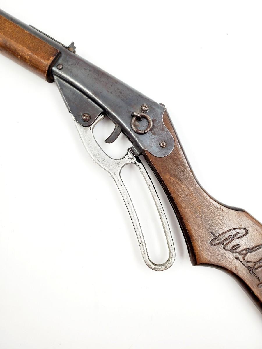 Fabulous vintage Daisy Red Ryder Carbine Bb Gun, Model No. 111. Initials have been carved into the wood, see photos. Untested.