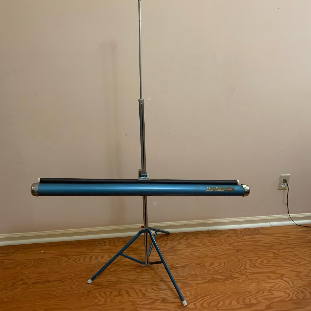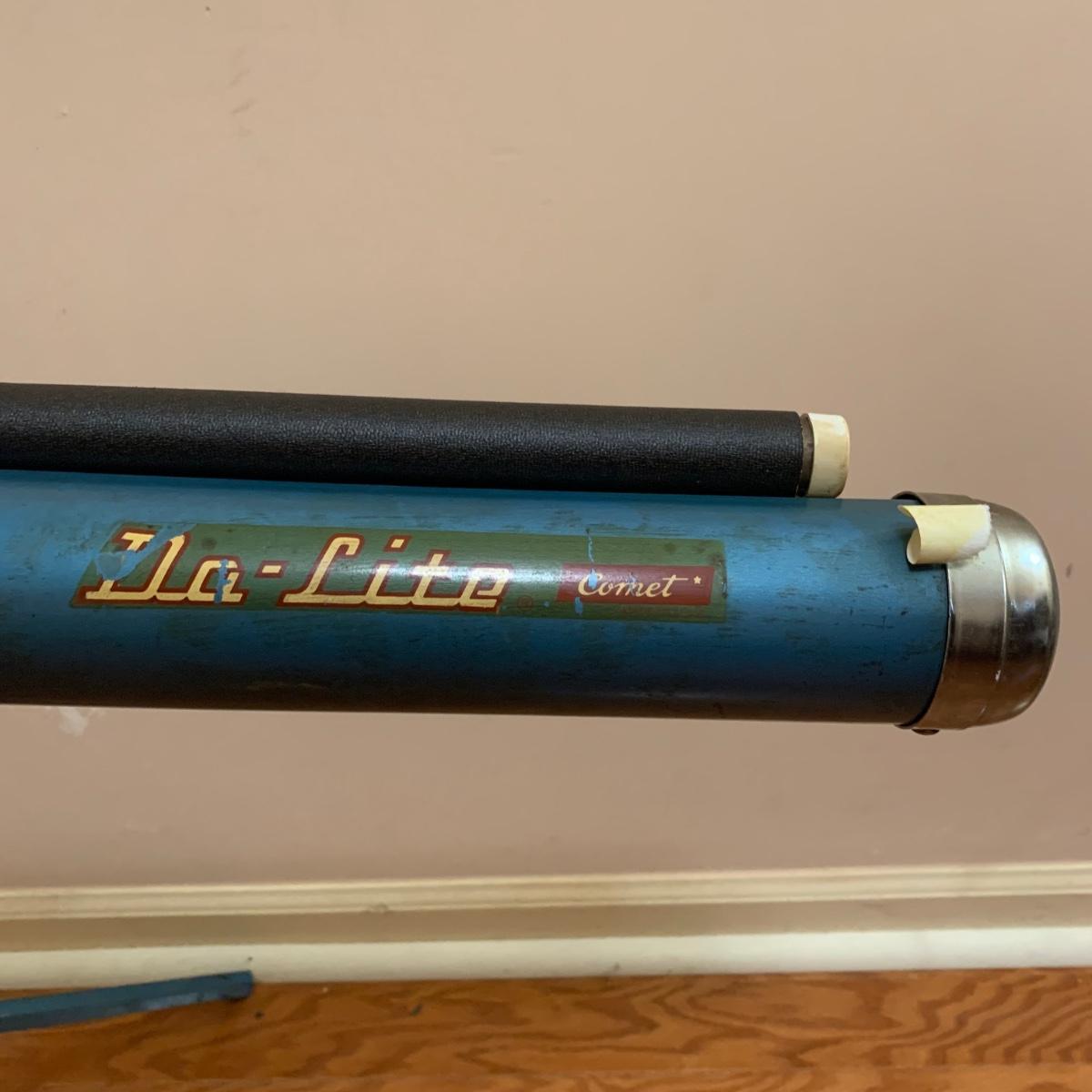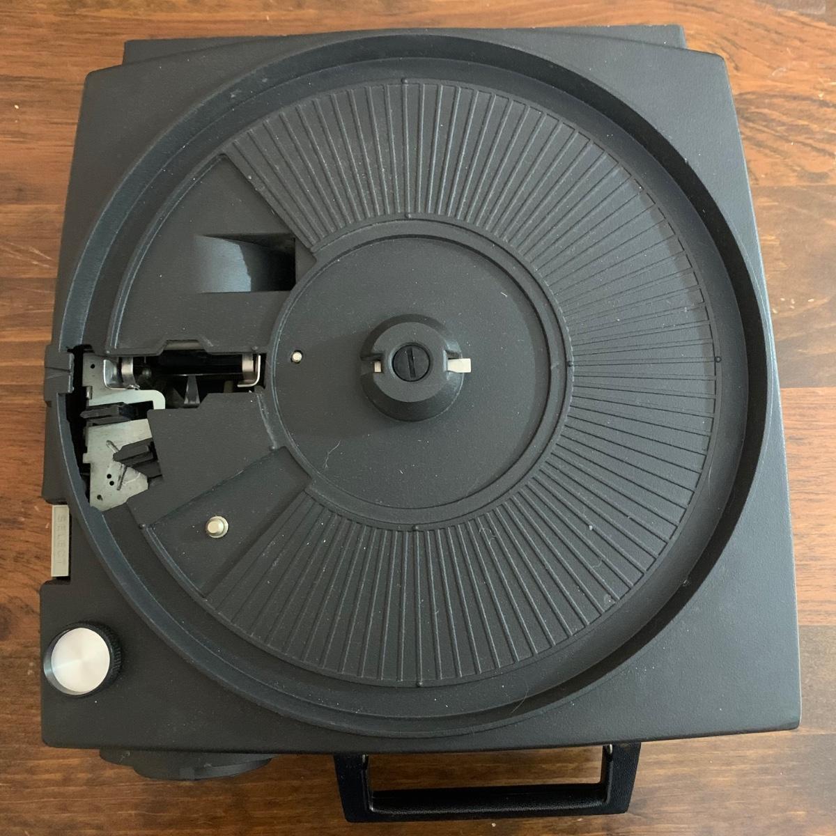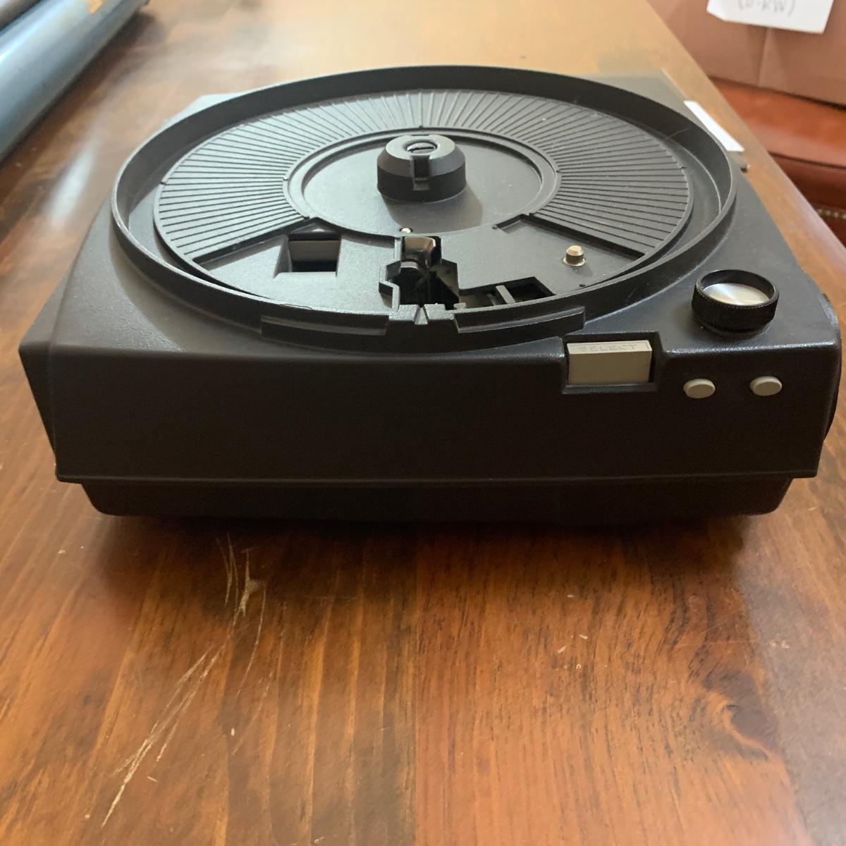 This exciting lot includes a Da-Lite Comet manual protector screen on tripod and Kodak Carousel 650H Projector. Projector screen has some yellowing from time, but collapses easily and is otherwise in good condition. It is missing one foot pad, however this does not cause any balance issues. Kodak Projector powers on and appears to be in good condition. It has a little storage compartment for the electrical wire and a foldable handle for easy transport.