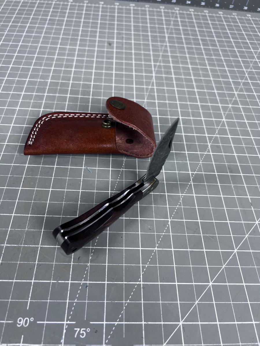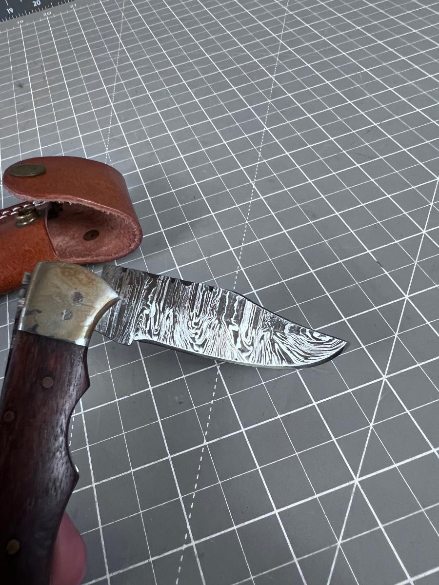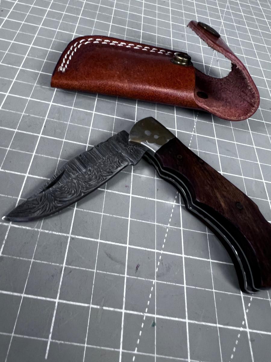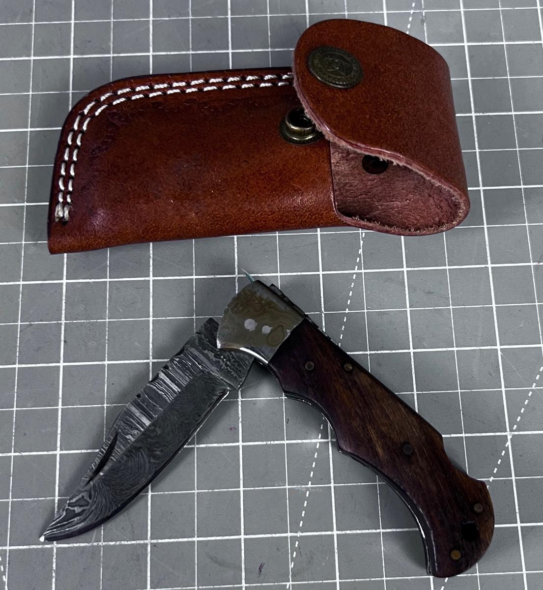 Vintage DAMASCUS Folding Knife with Sheath