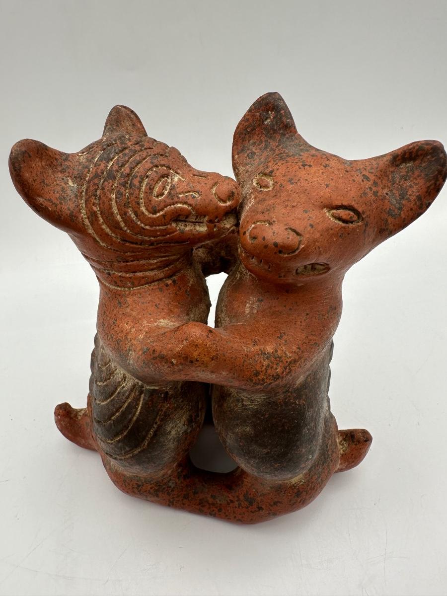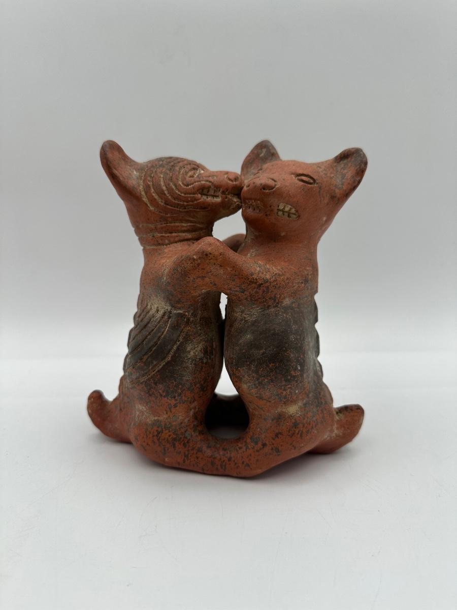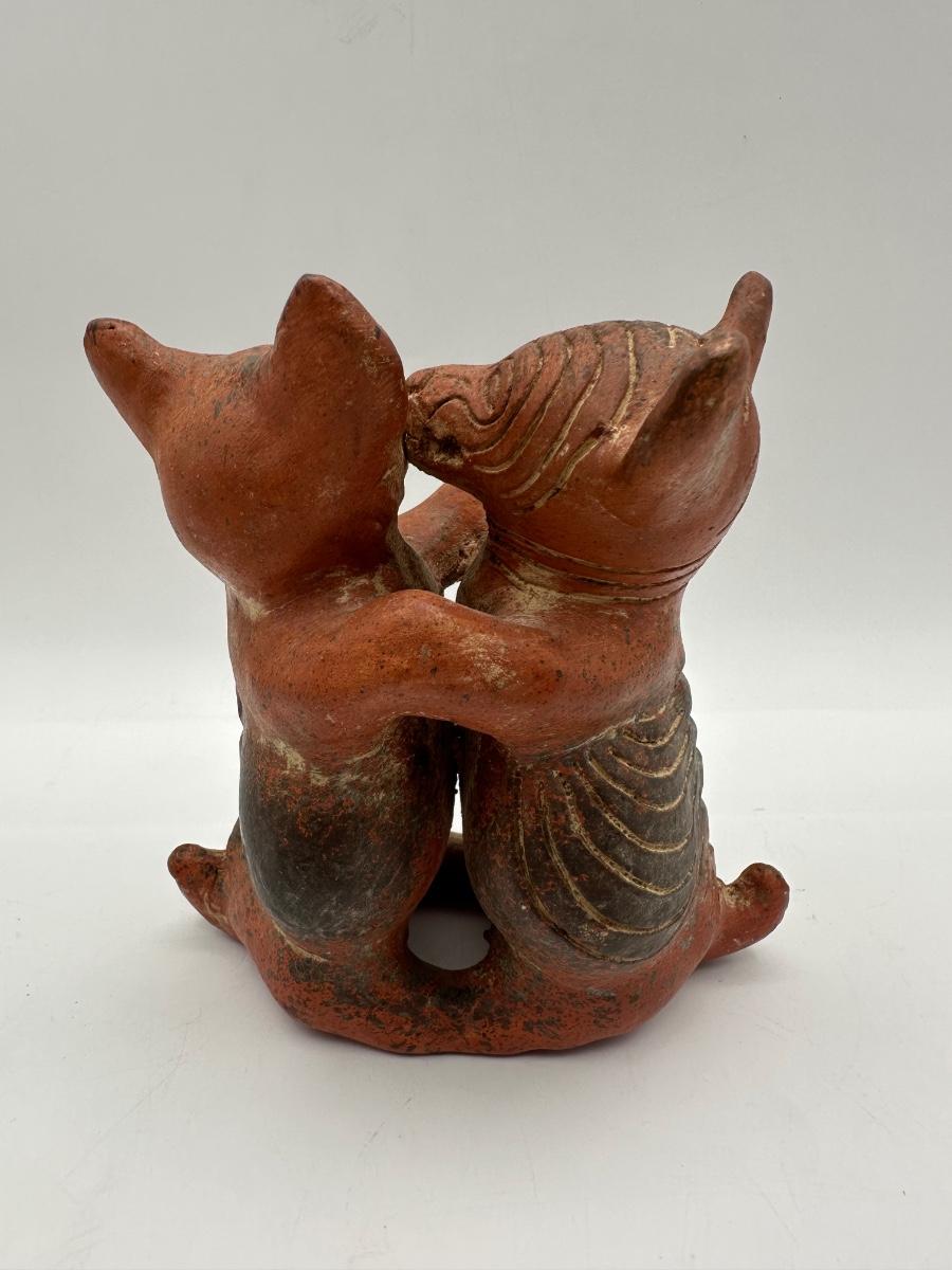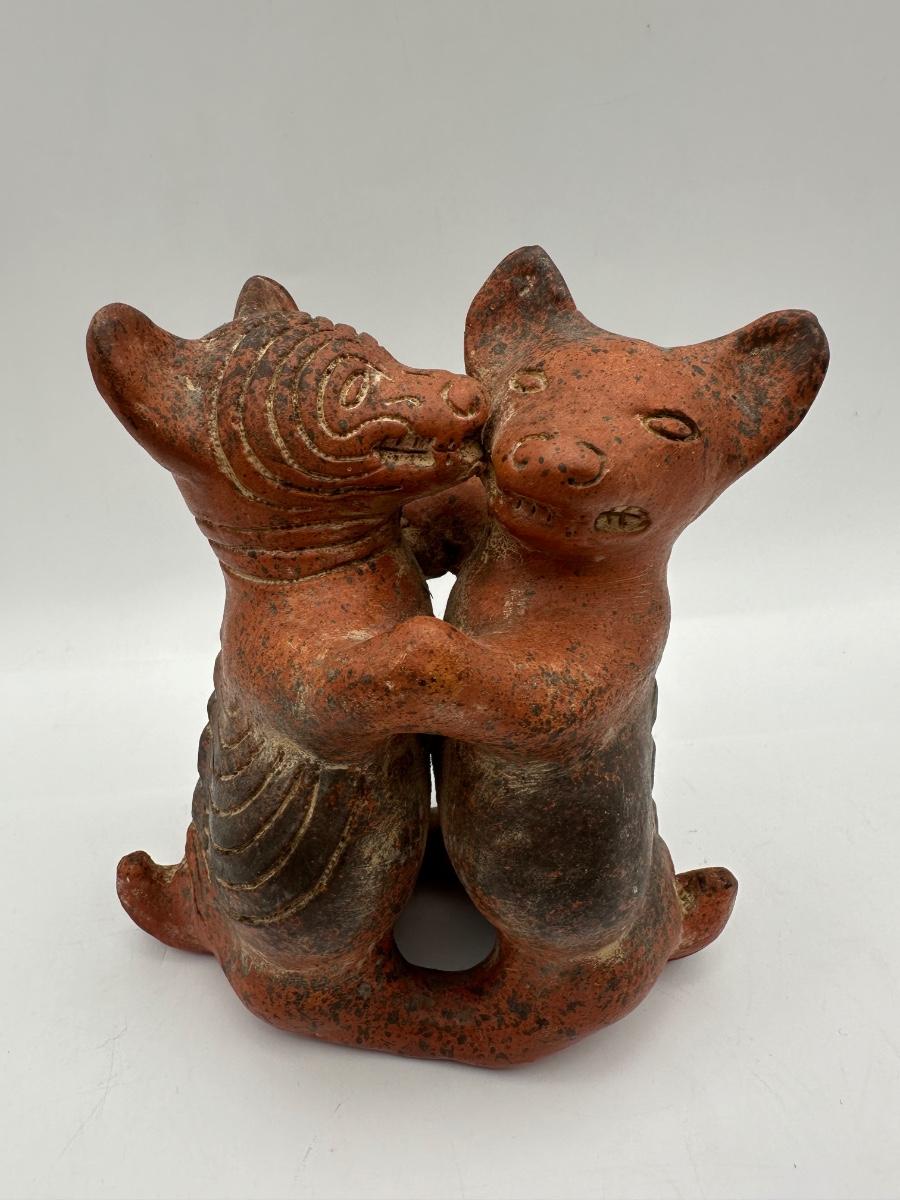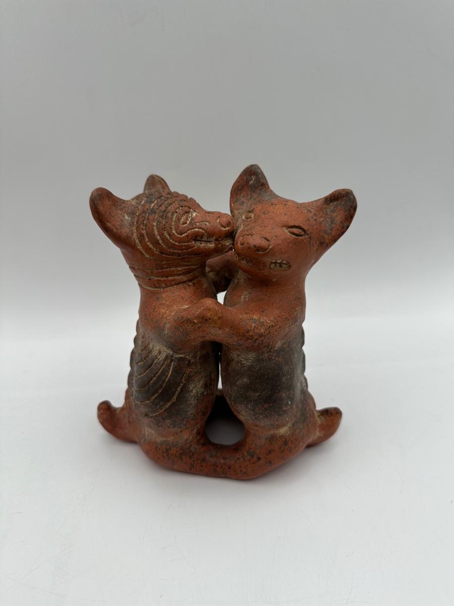 Vintage Dancing Dogs Mexican Pottery Folk Art 6"