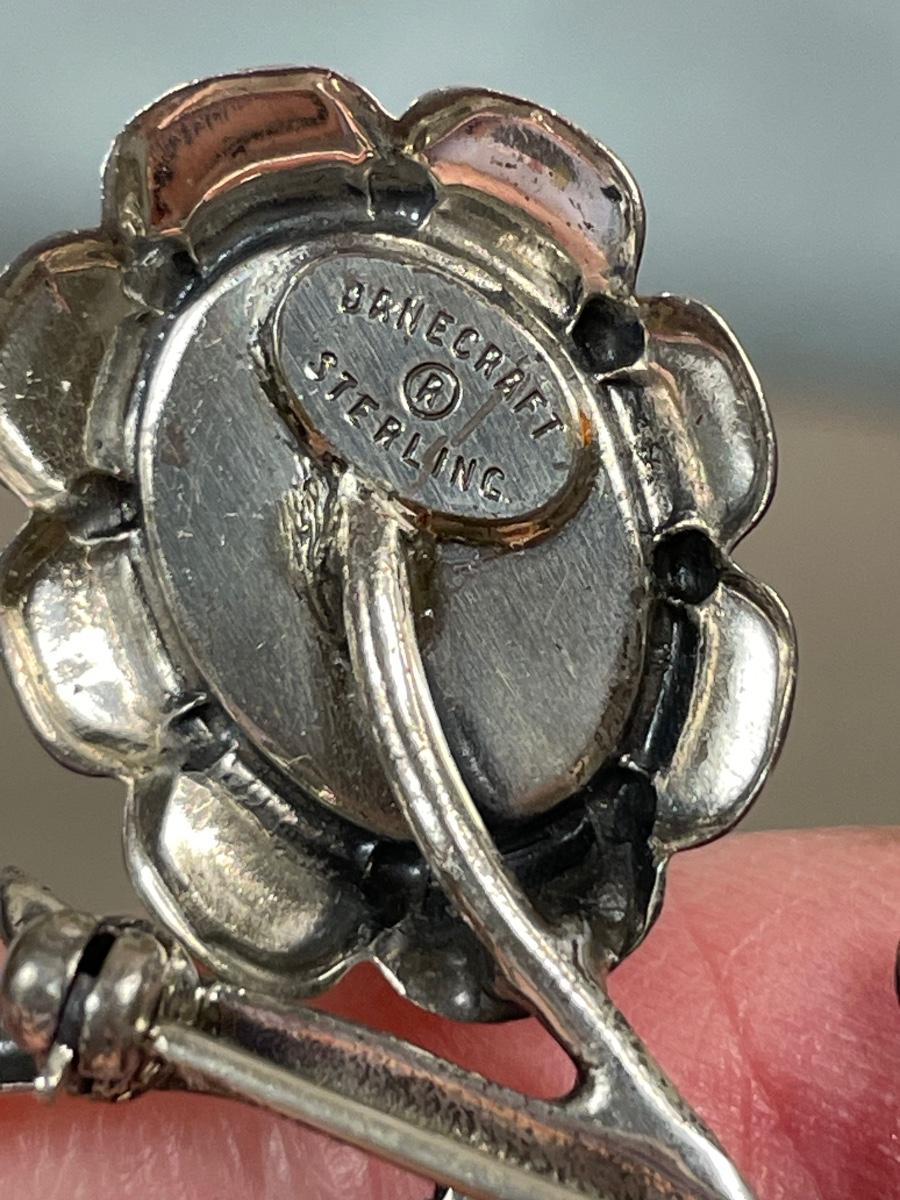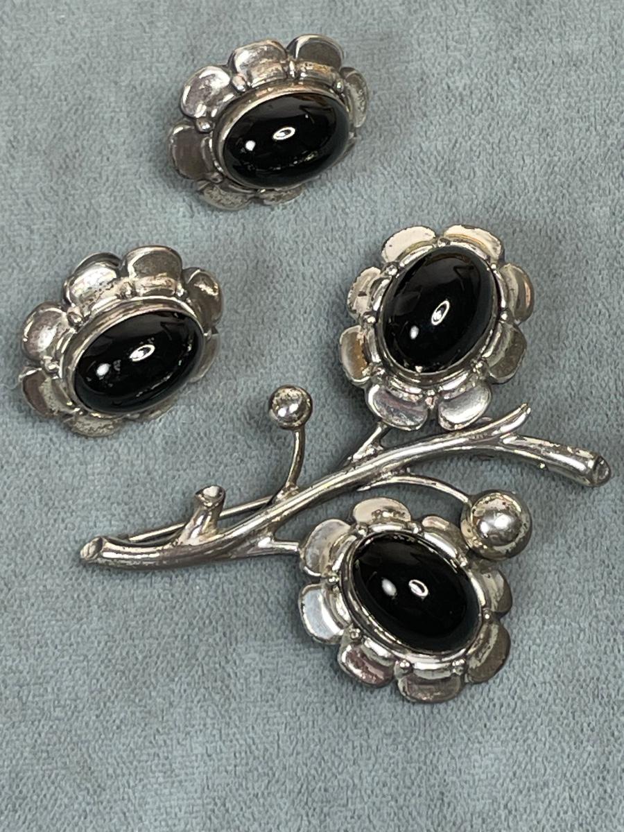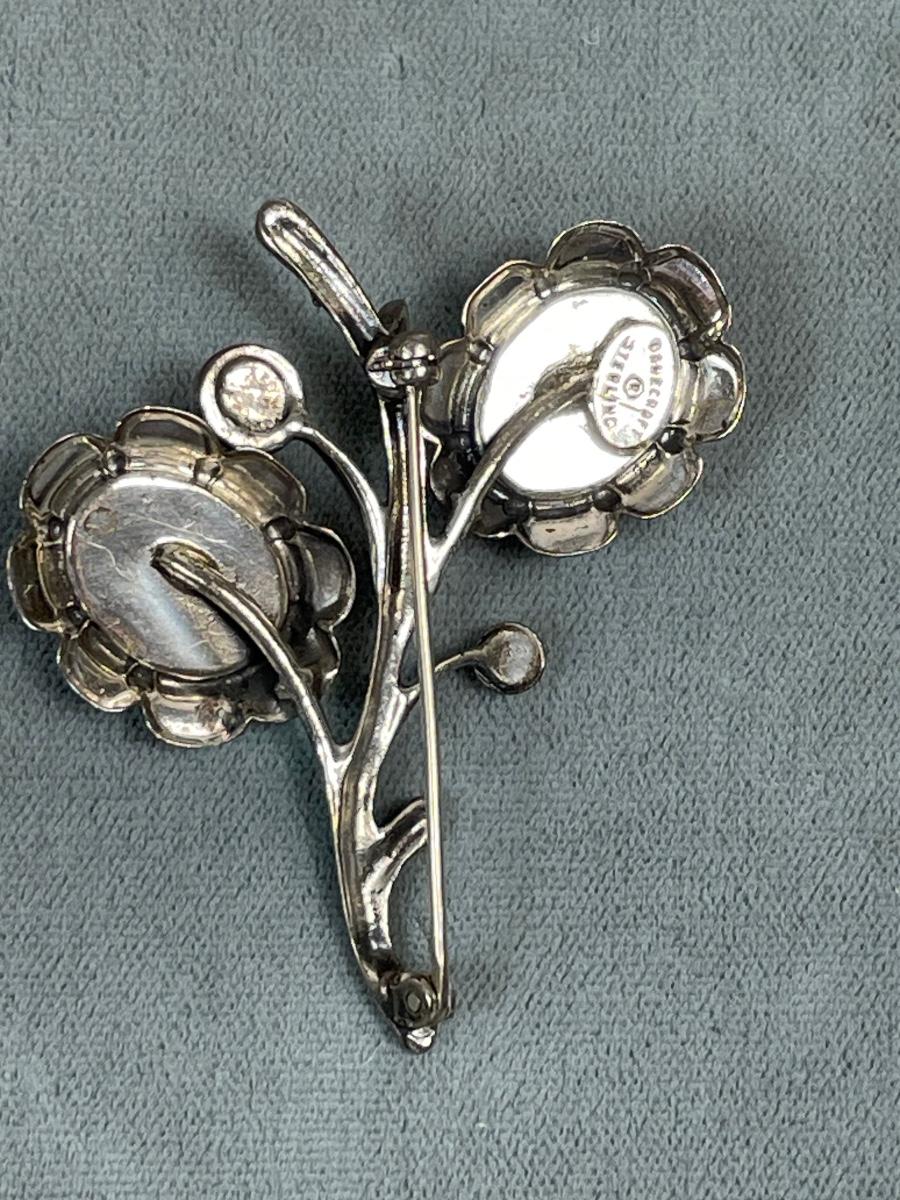 Sterling silver flower spray pin and earrings 2 1/4 inch by 1 3/4 inches