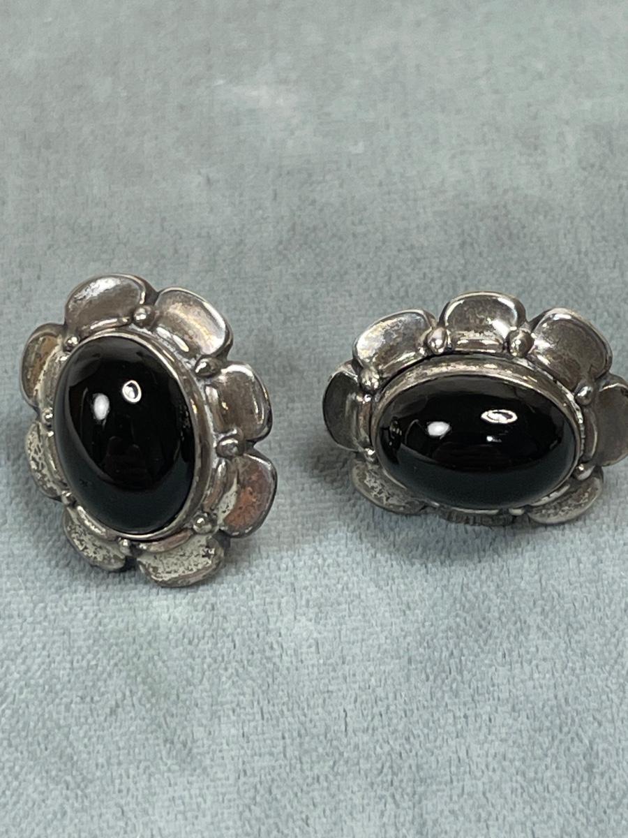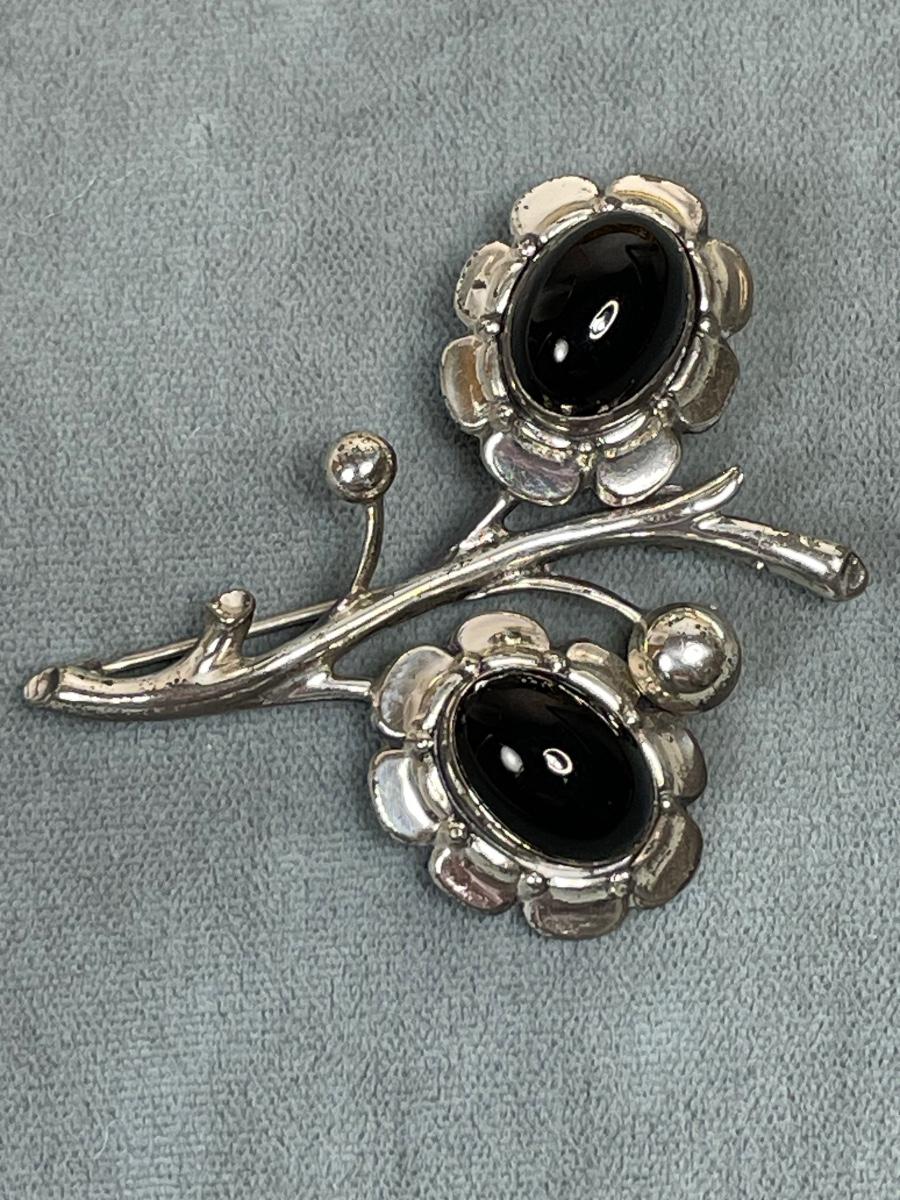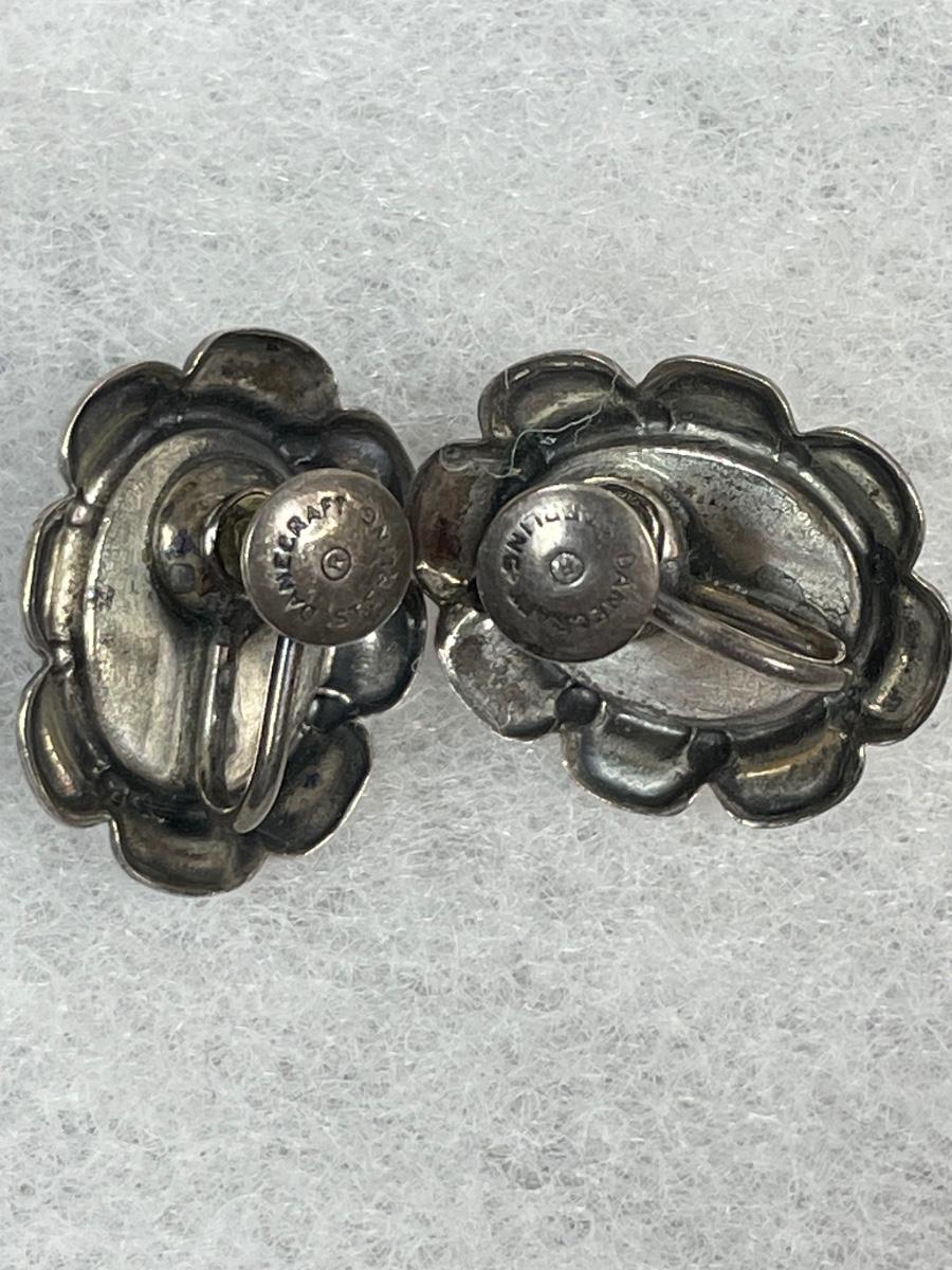 Sterling silver flower spray pin and earrings 2 1/4 inch by 1 3/4 inches