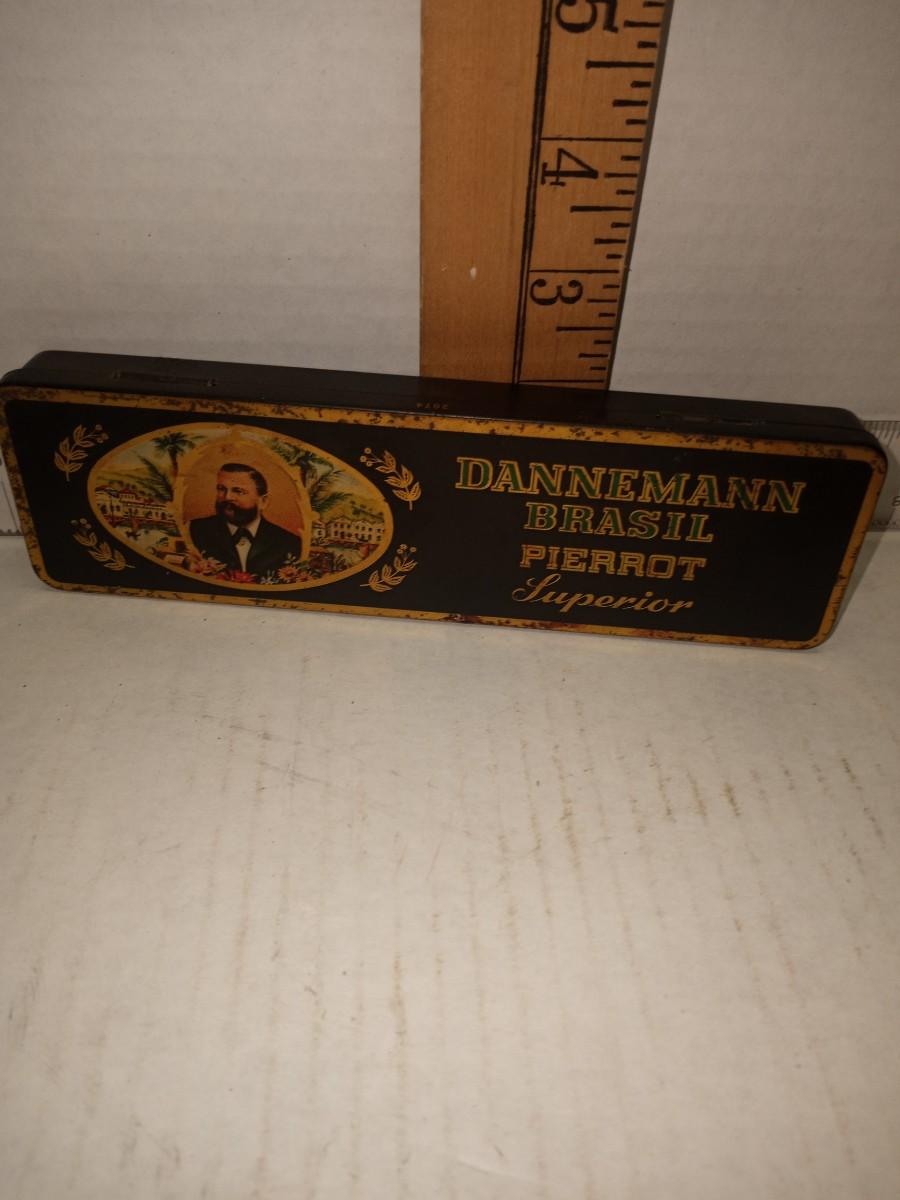 VINTAGE DANNEMANN BRASIL PIERROT LONJA CIGARILLOS TIN - EMPTY - COLLECTORS ITEM