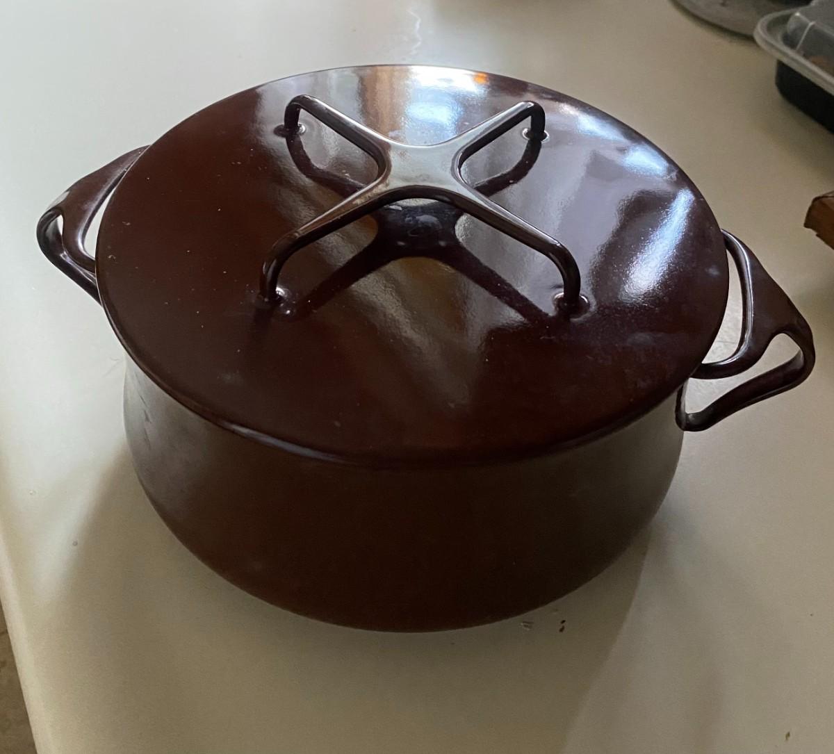 Vintage Dansk  France Brown Enamel 2 Quart  Dutch Oven Pot Trivet Lid Pan