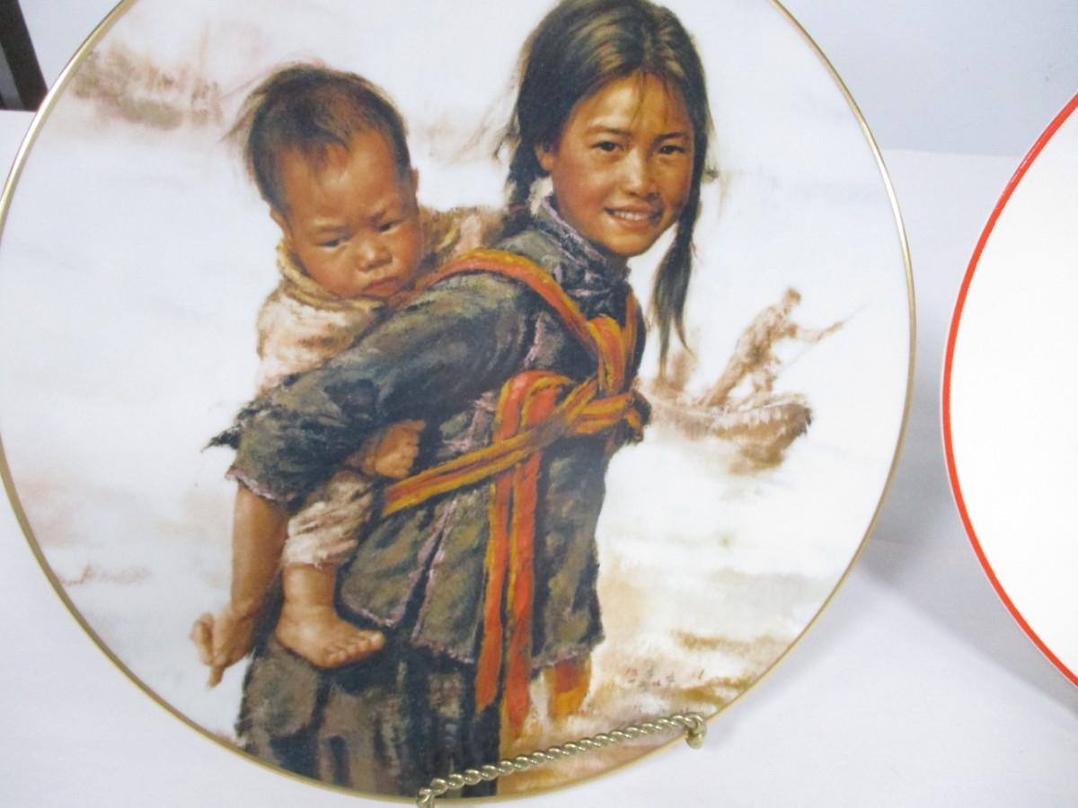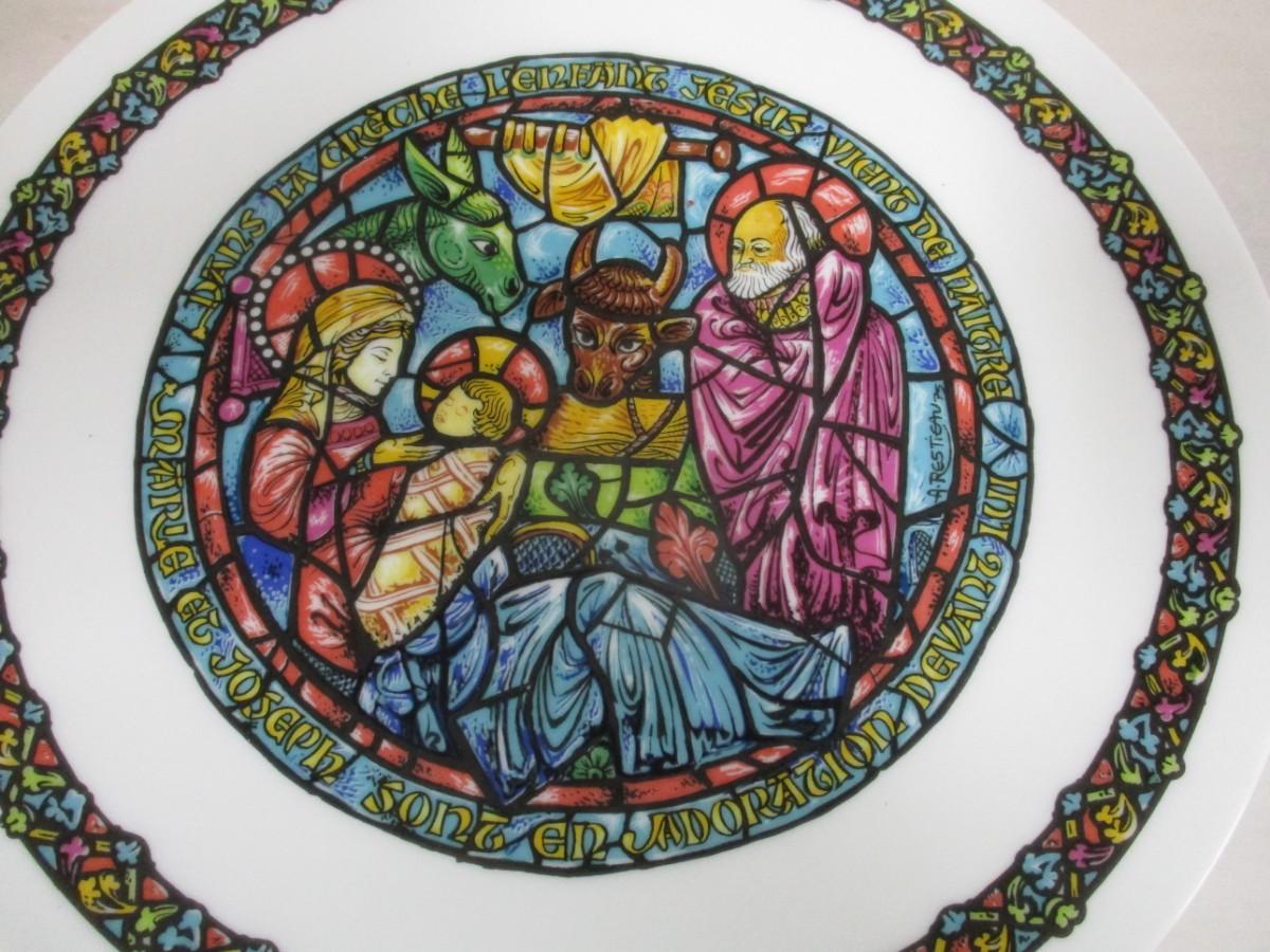 Vintage D'arceau Limoges Noel Vitrail Plate "Girl With Little Brother" by Kee Fung Ng