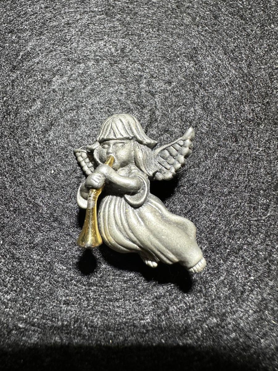 Vintage Daria pewter angel with horn pin