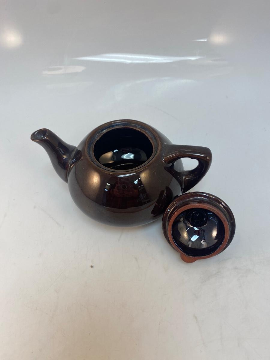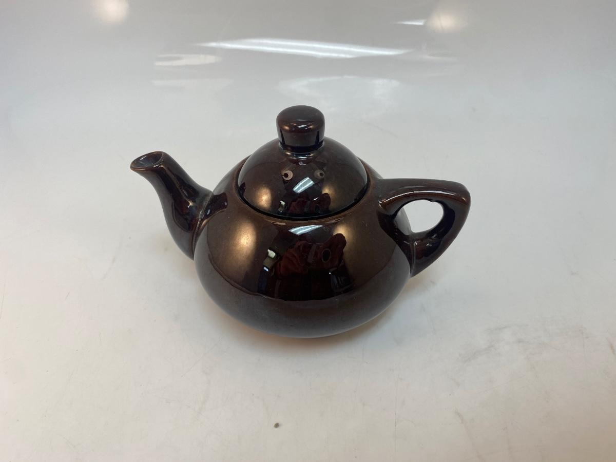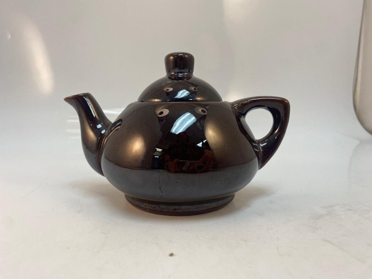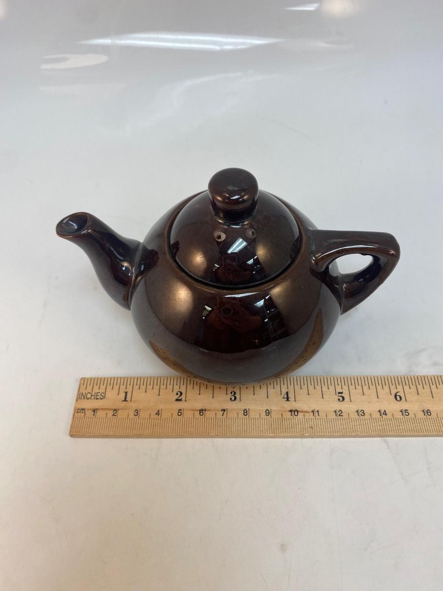 Vintage Dark Brown Pottery Small Mini Personal Ceramic Teapot. In good vintage condition. Displays great. Unmarked.