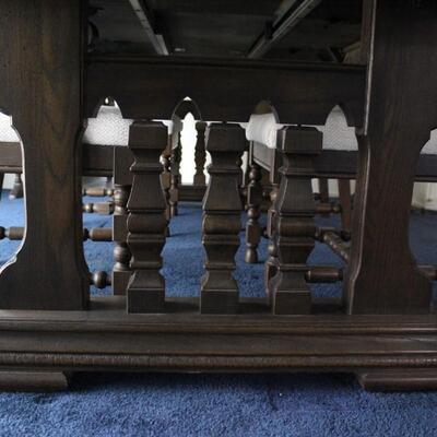 Vintage Dark Finish Spanish Revival Gothic Dining Room Table and Chairs Set