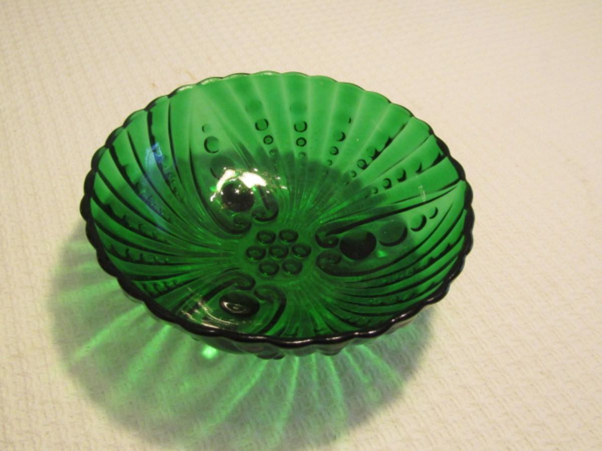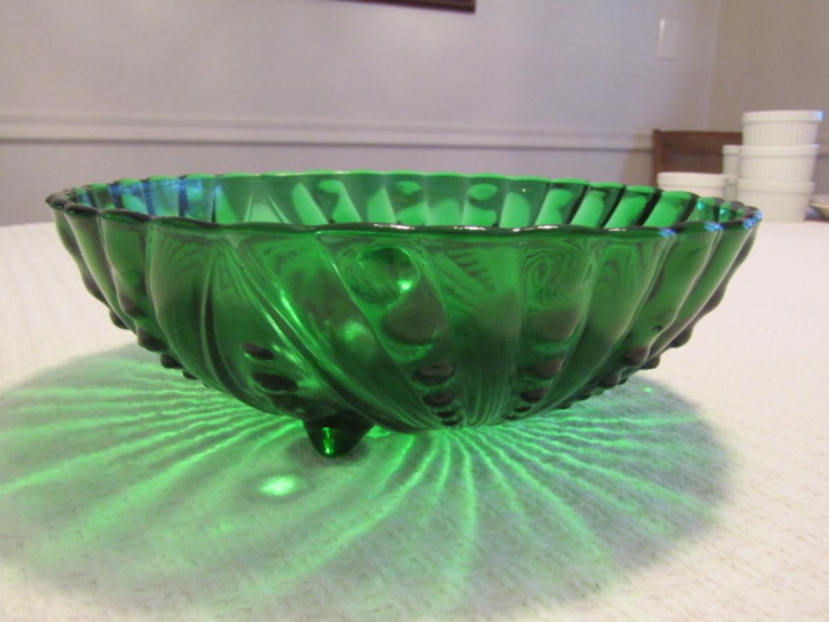 Vintage Dark Green Glass Footed Bowl