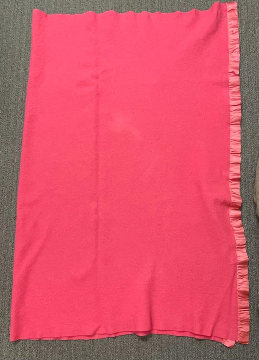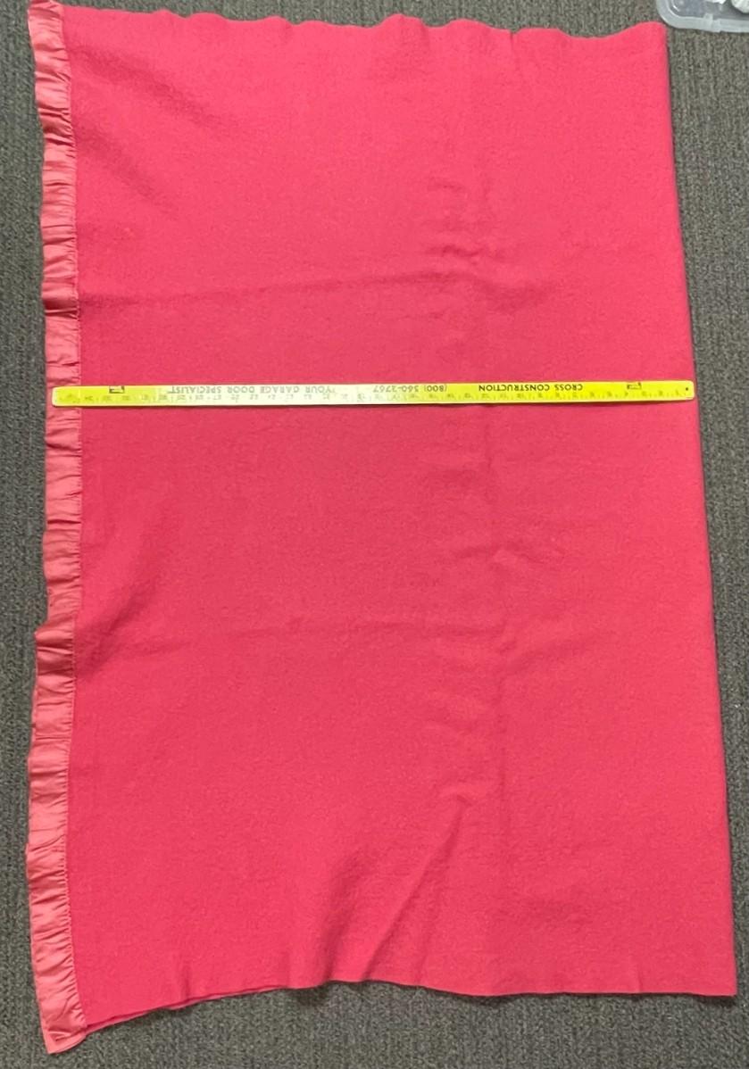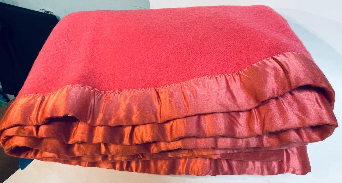 Vintage Dark Pink Wool Blanket with satin trim 58 x 72