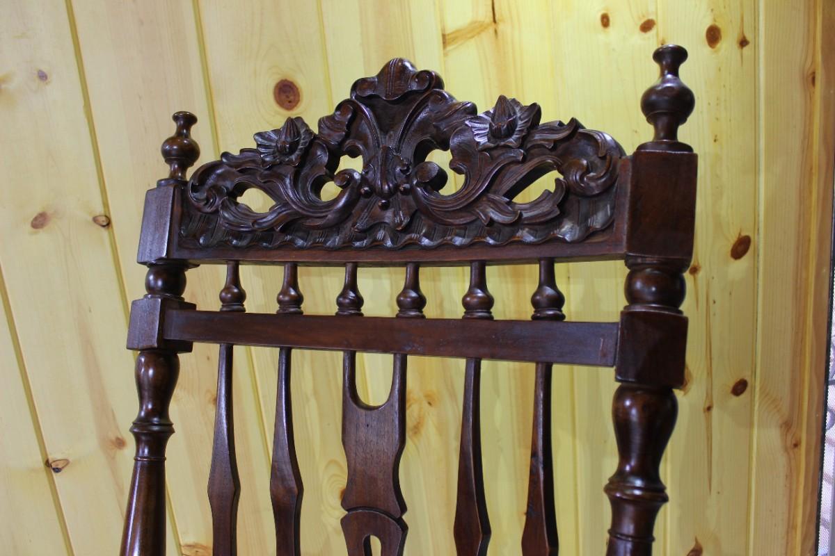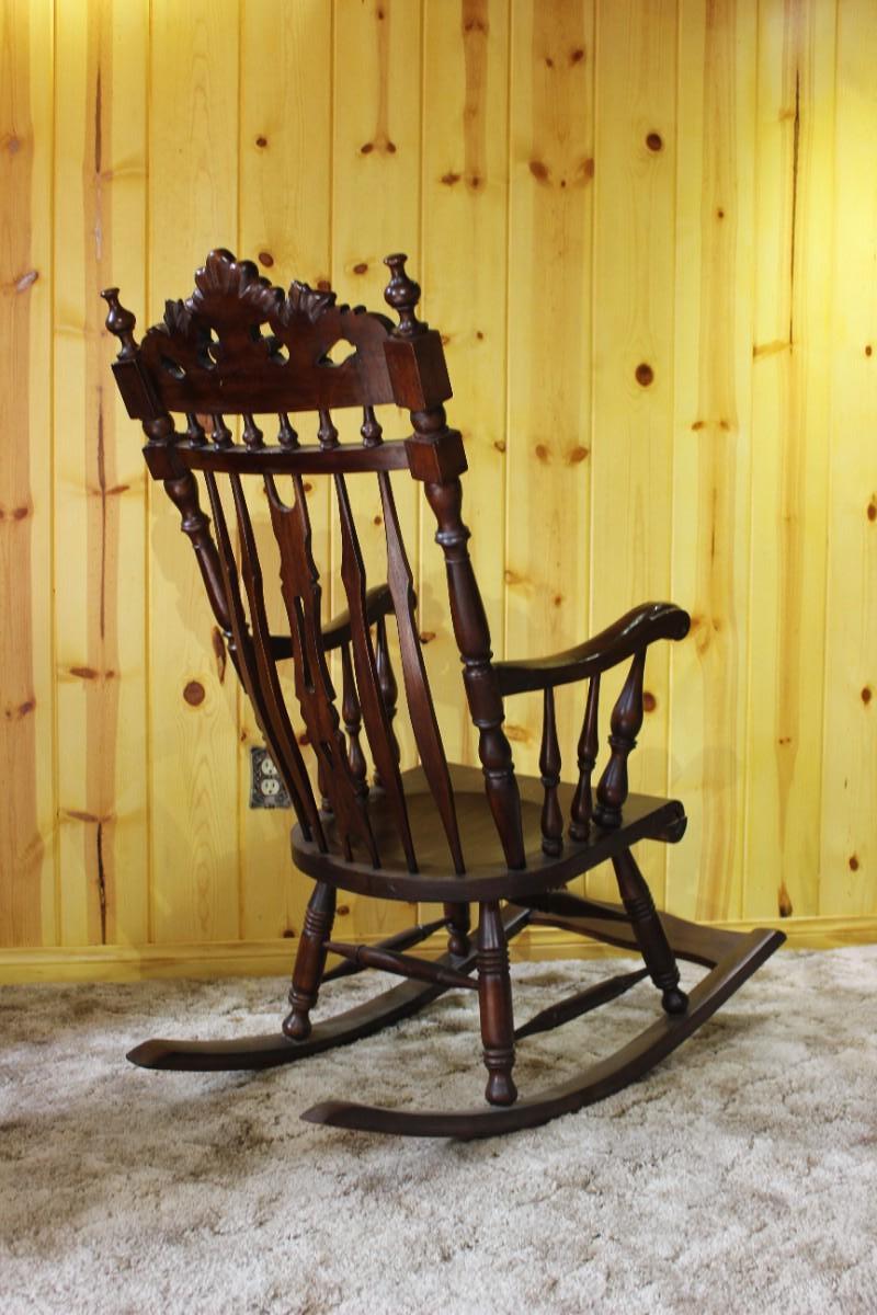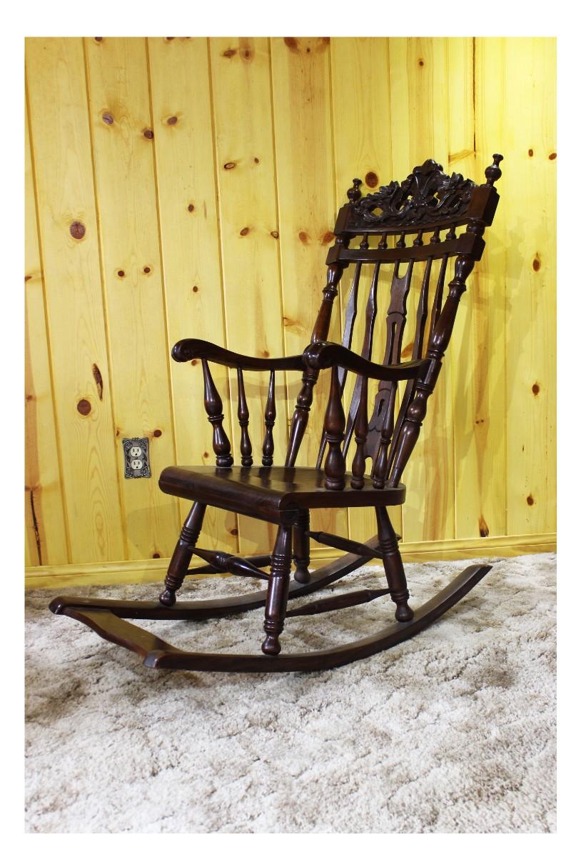 Vintage Antique French Victorian Mahogany Dark Wood Spindle Back Rocking Chair with Foot Rest