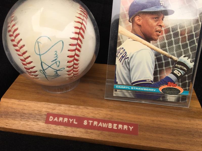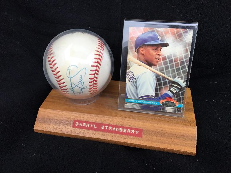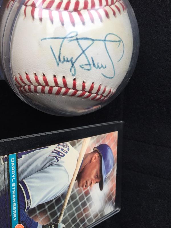 Vintage Darryl Strawberry Signed Baseball and Card
