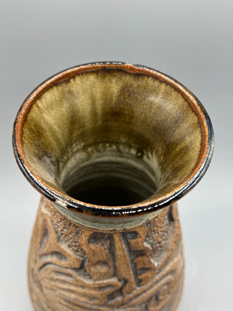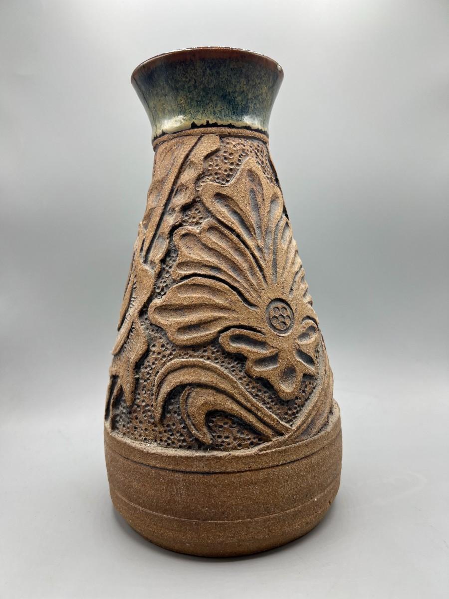 Vintage Dave Ramsey Pottery Stoneware Carved Foliage Vase