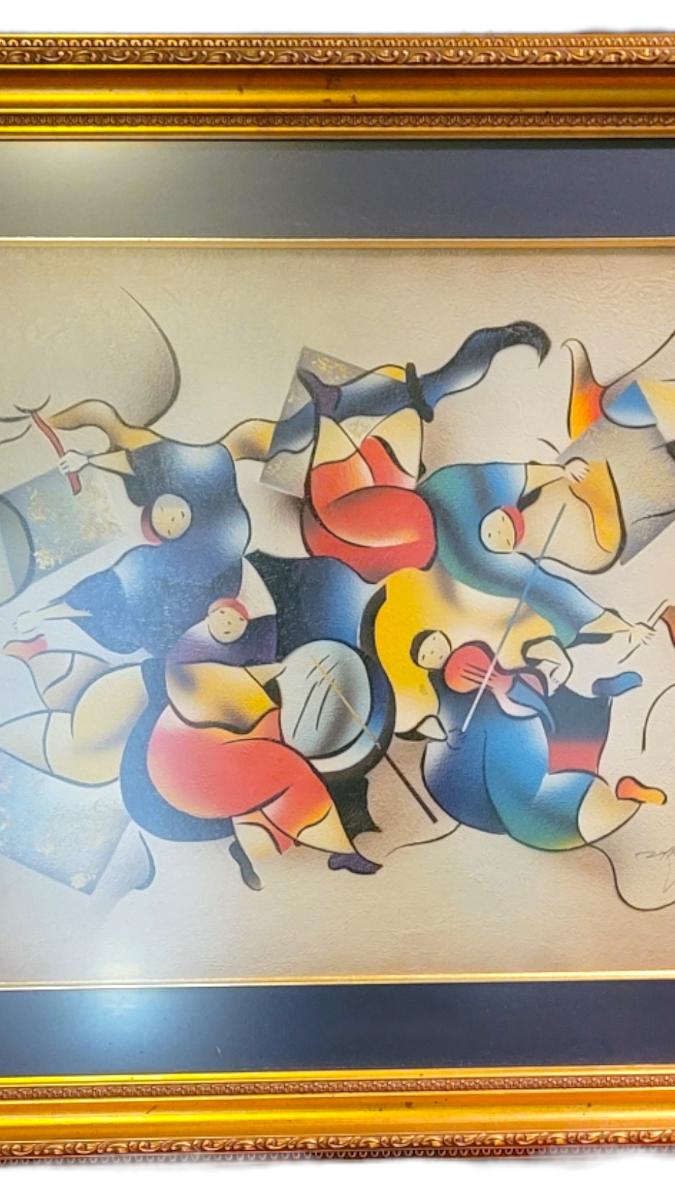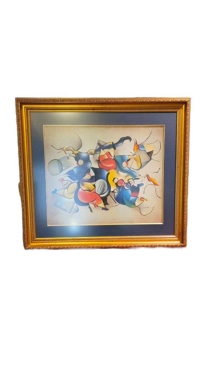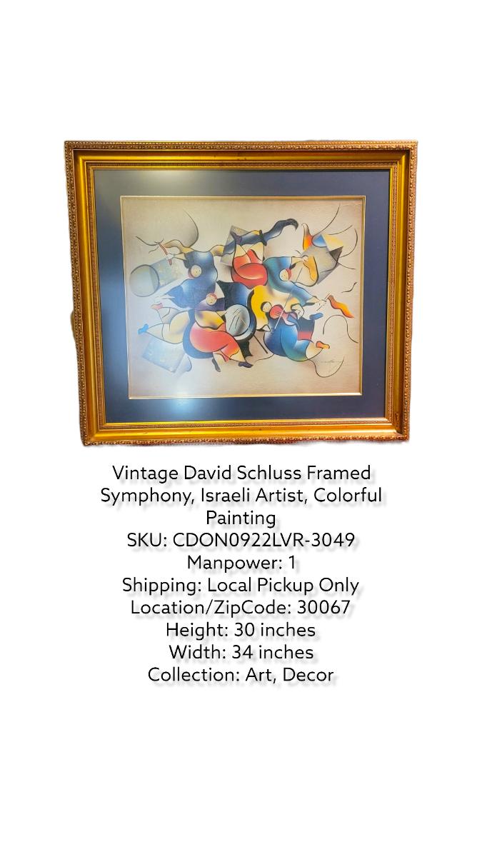 Very nice frame and print. Vintage David Schloss Framed Symphony, Israel Artist Colorful Print Art Décor