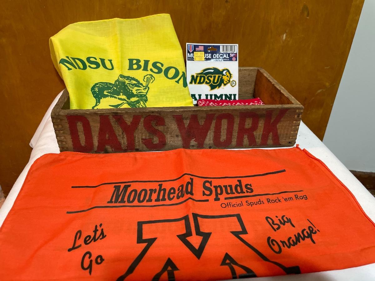 Includes NSU alumni Decal, NDSU, Red & Moorhead spuds hankies
