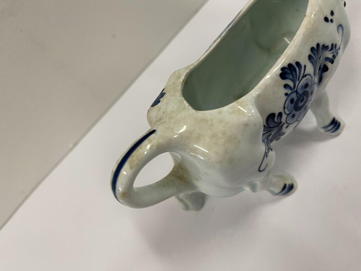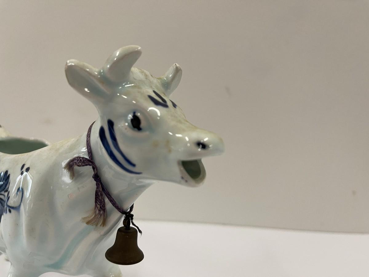Make coffee & teatime a moo-mentous* occasion when you serve cream or milk! (*Please forgive your writer.) Charming creature with hand painted mill & floral accents. The charming bell is adorable! Approx.: 7" L x 4.5" H # 1075