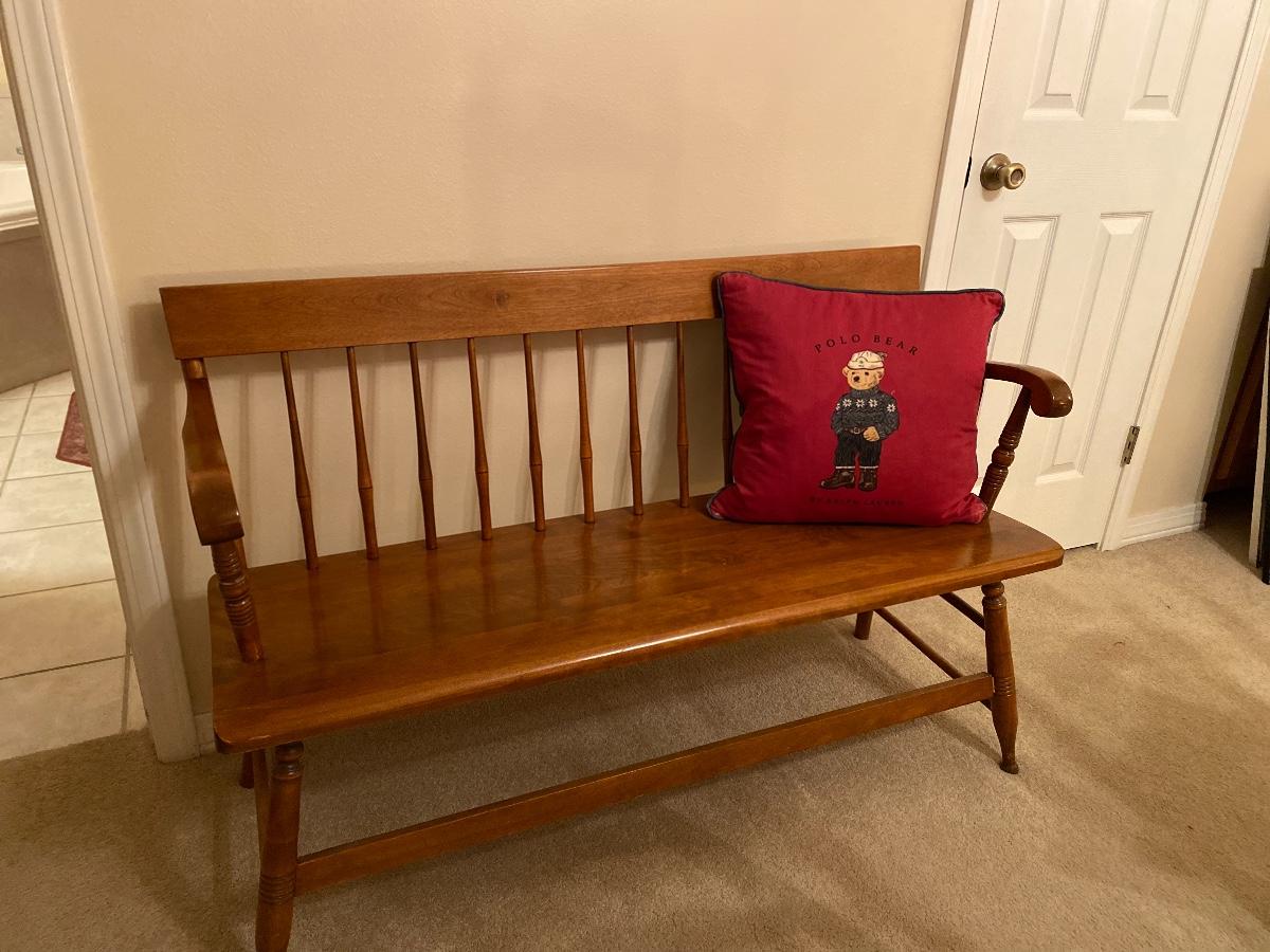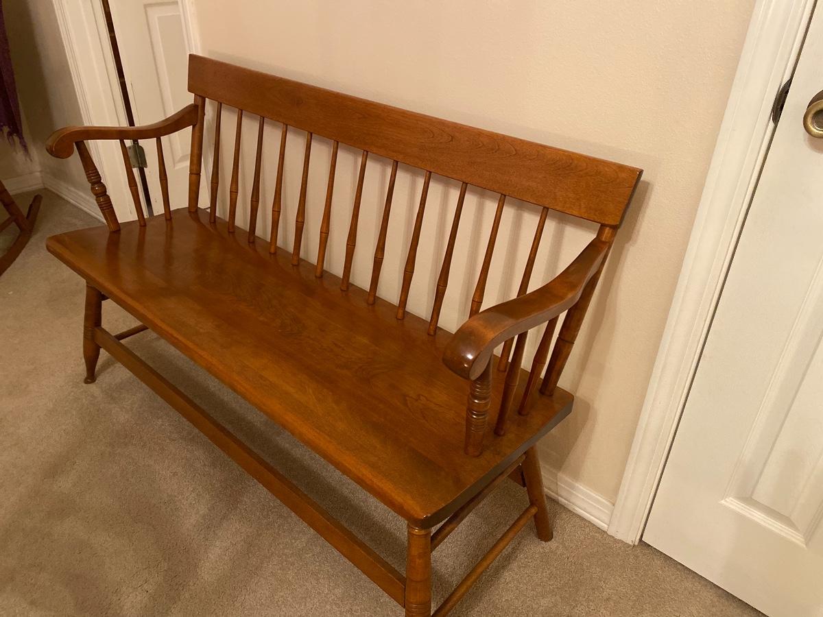 S Bent & Bros vintage solid maple deacons bench. Excellent condition 48” wide
