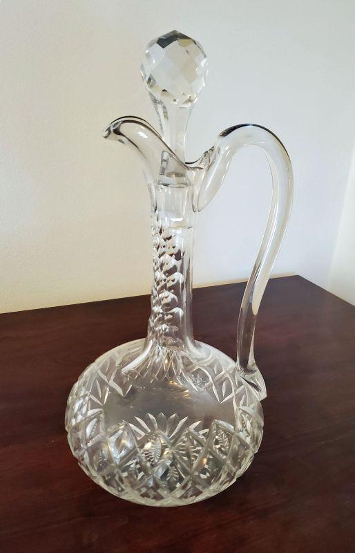 crystal decanter with stopper in good condition. Measures 12" tall. Please see all photos.