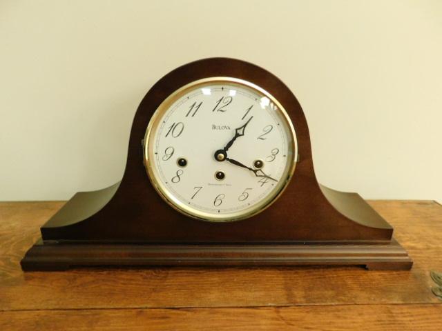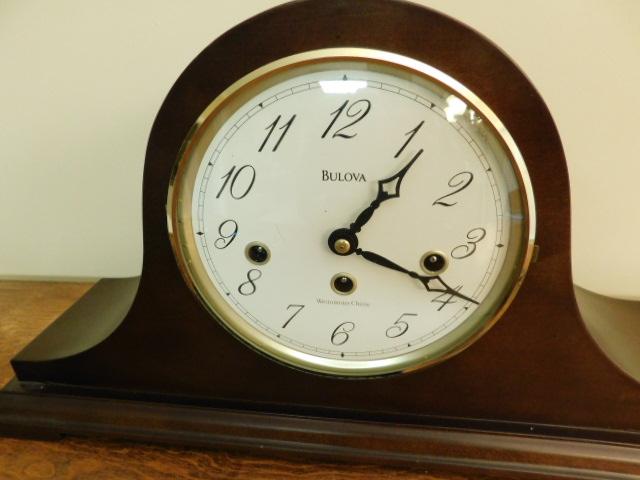 Vintage Deco Bulova Wood Case Mantle Clock with Key 18"