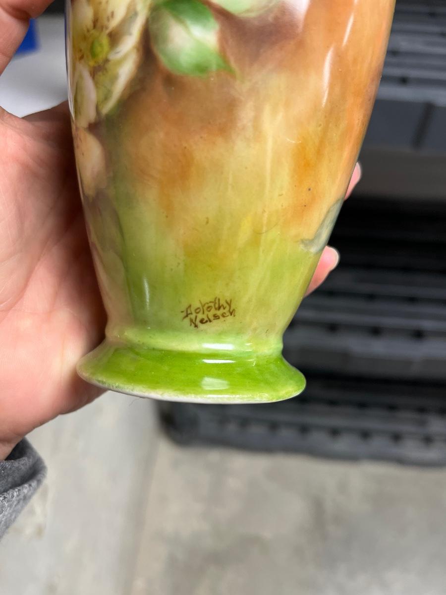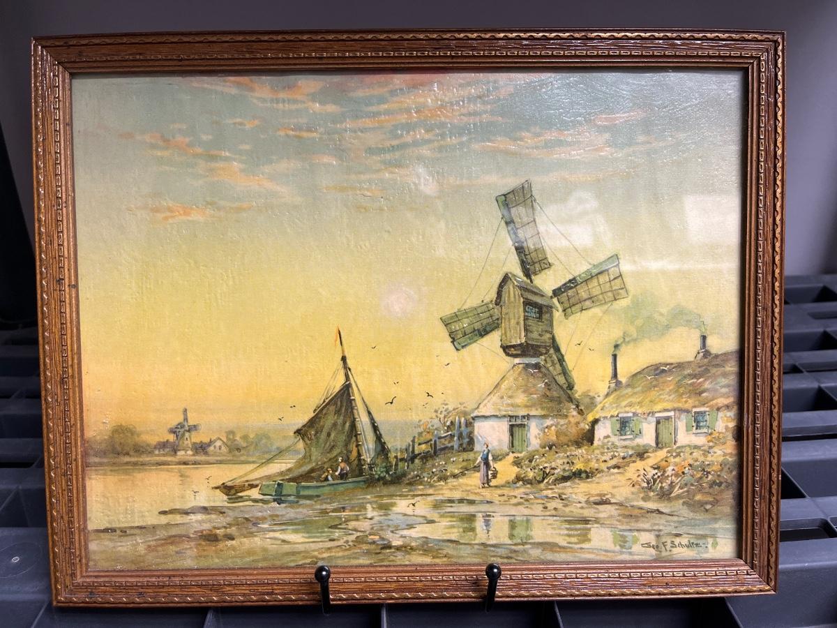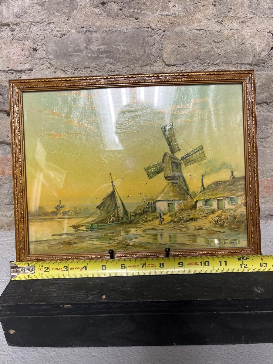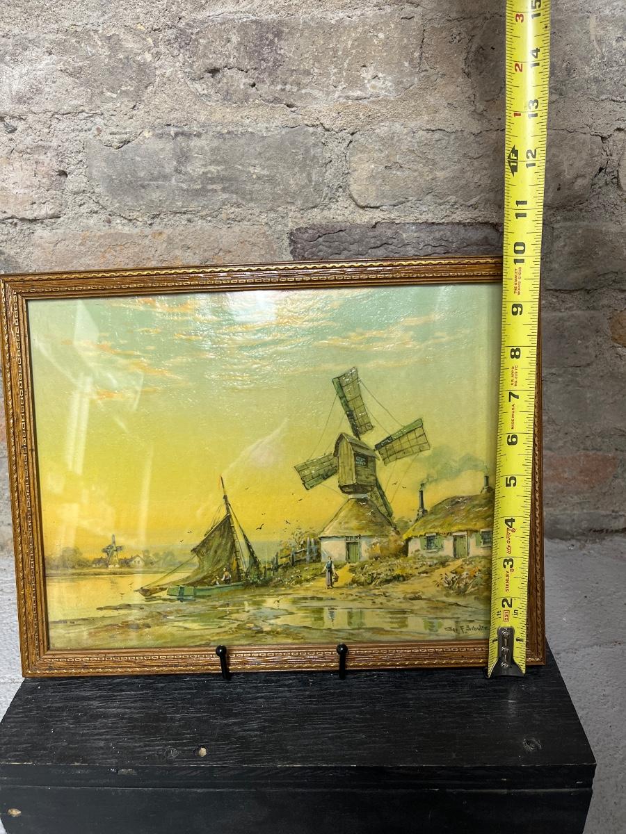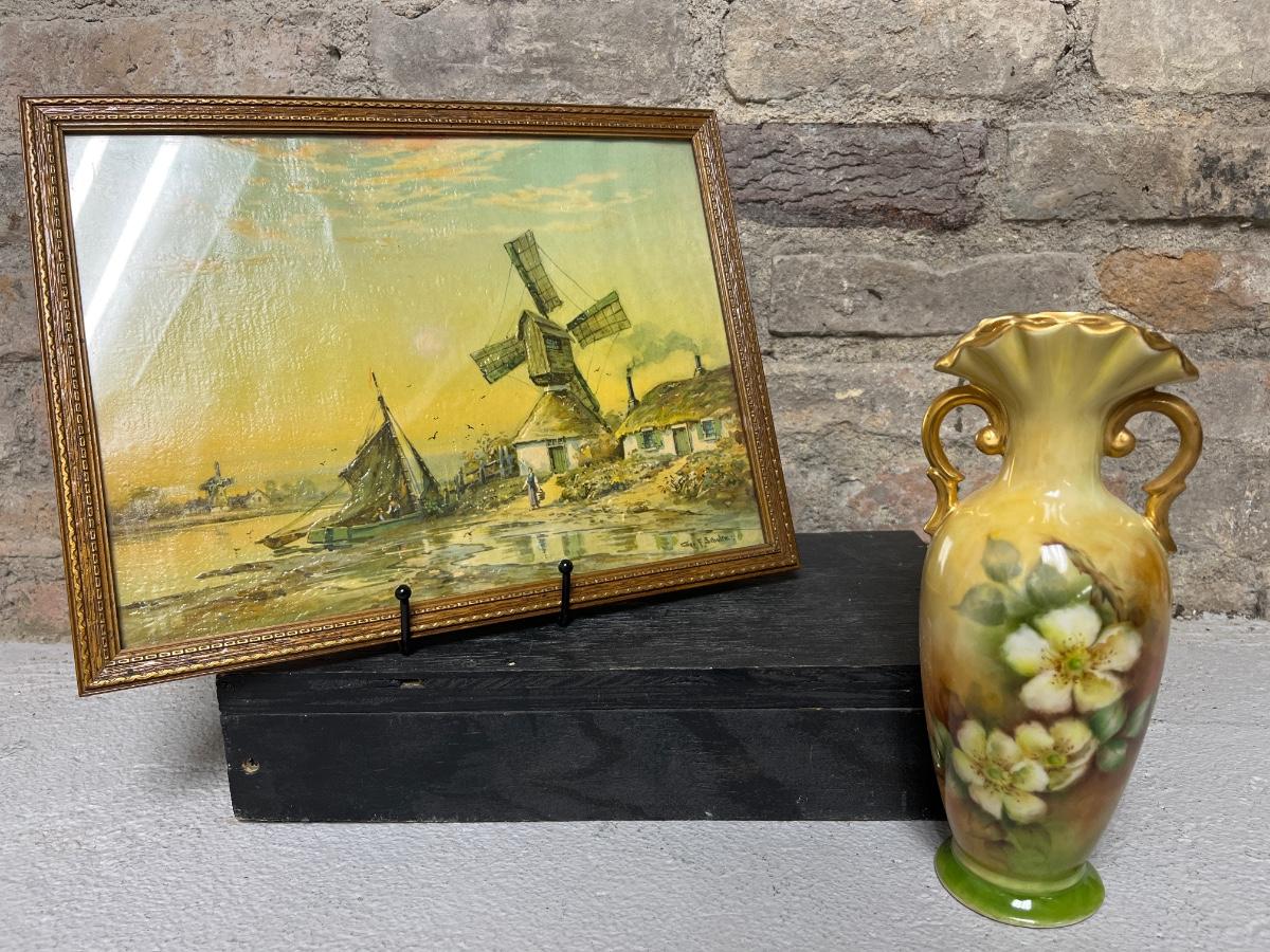 Hand painted porcelain vase and vintage Dutch windmill art