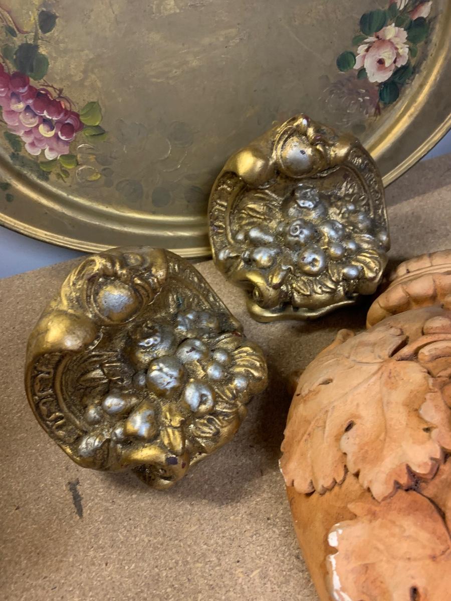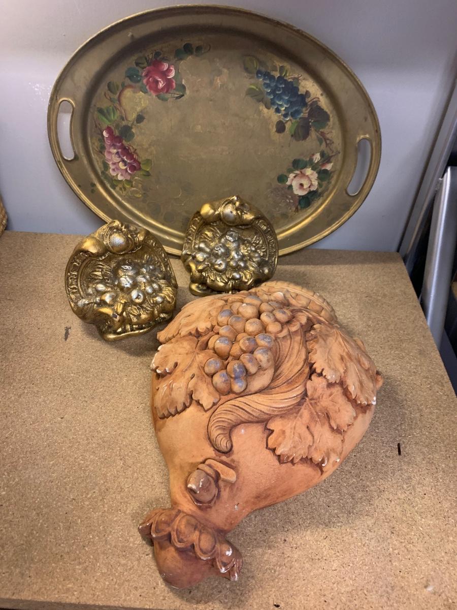 Vintage Decor Lot Terra Cotta Wall Hanger Bookends Tray