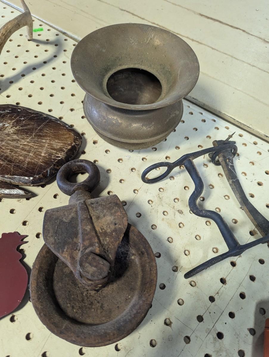 Vintage Decor Pulley Spittoon Paddle Horse Bit & More Vintage Items