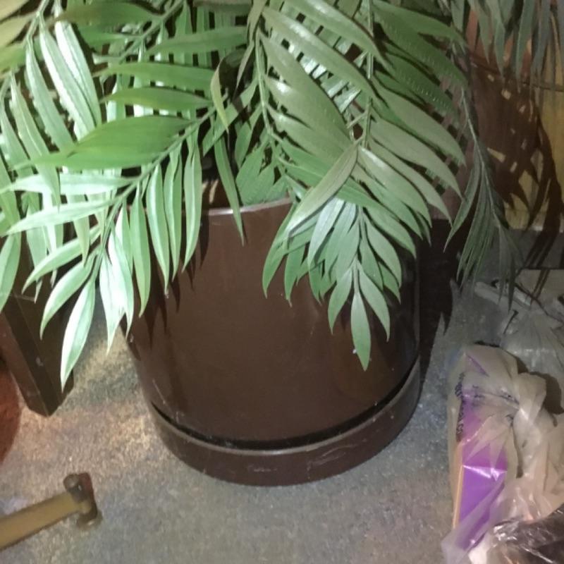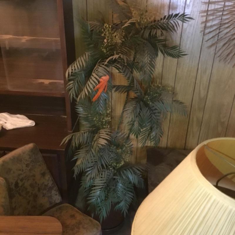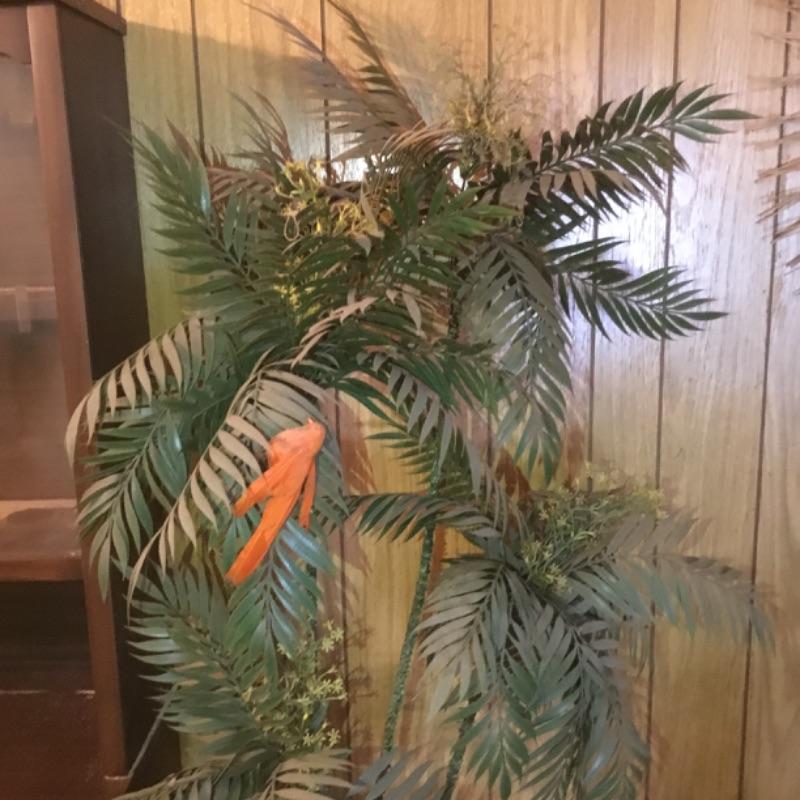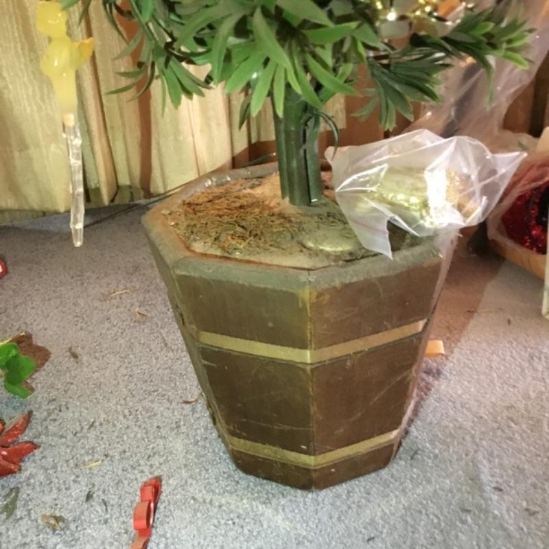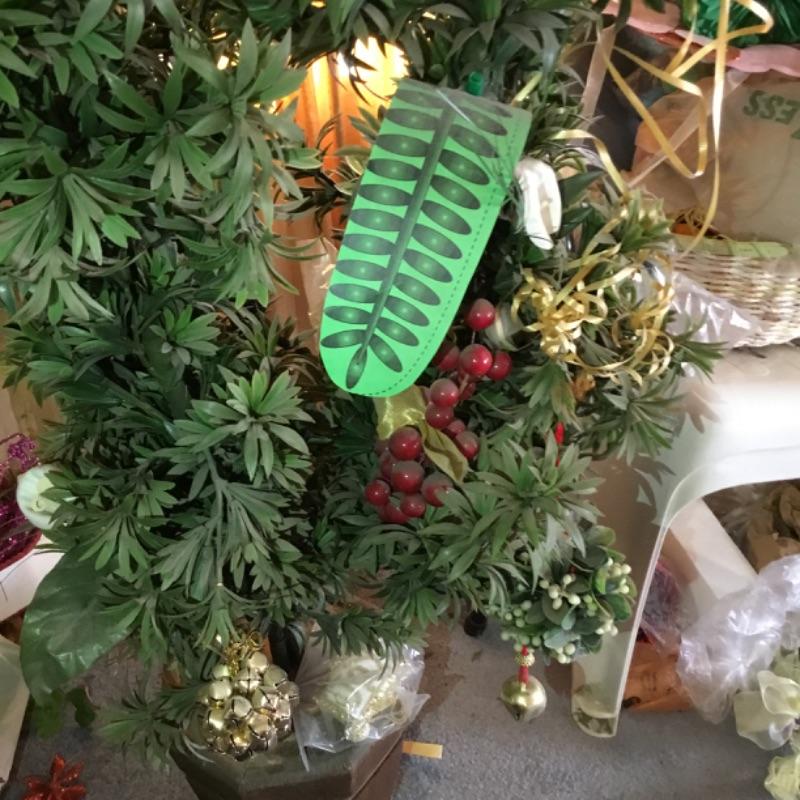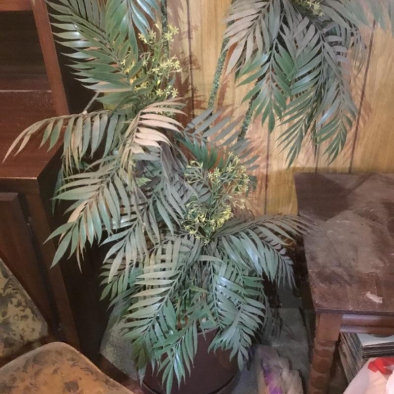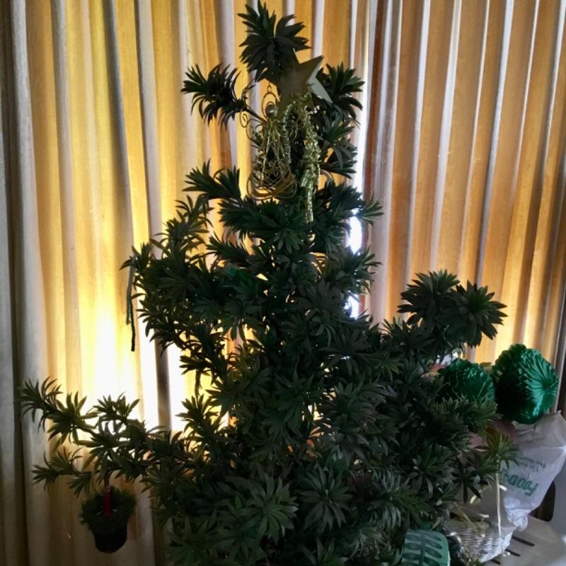 Auction is for two decorative artificial trees. One is holiday themed, the other is of a palm tree.