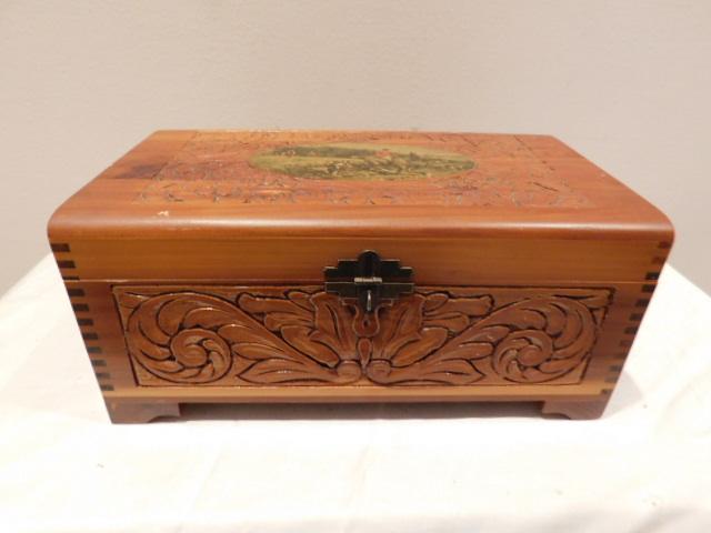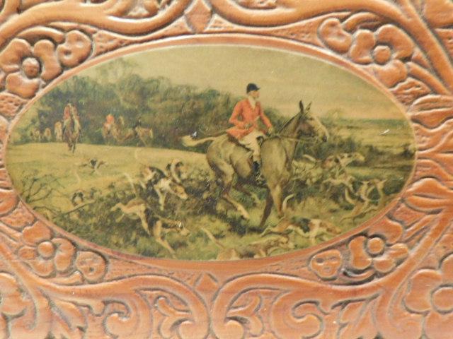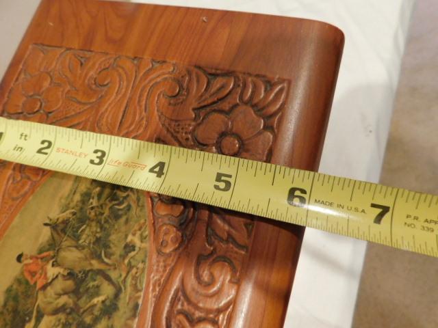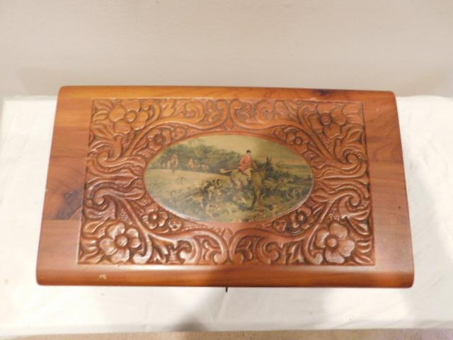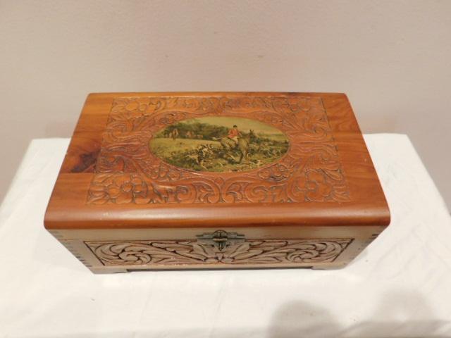 Vintage Decorative Carved Box with Hunter Scene 10"x6"