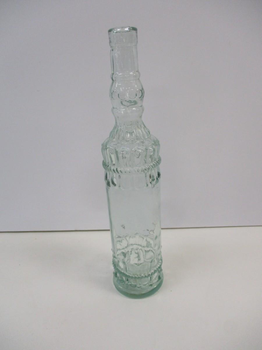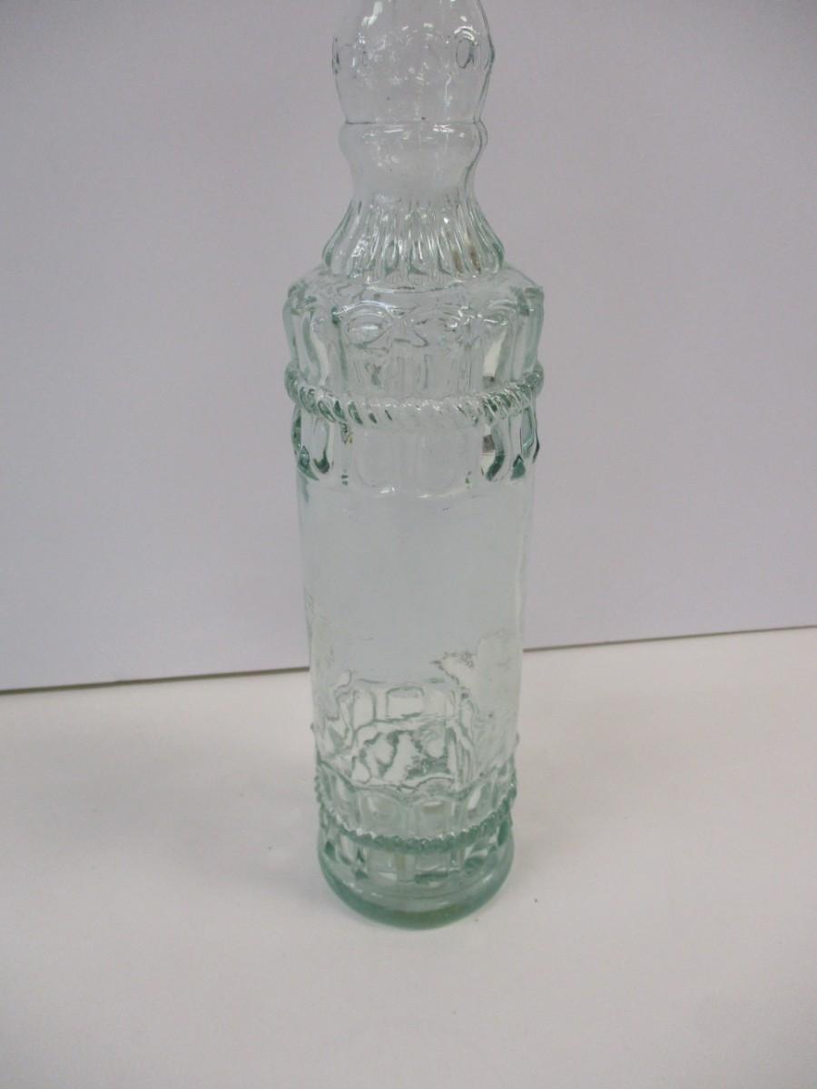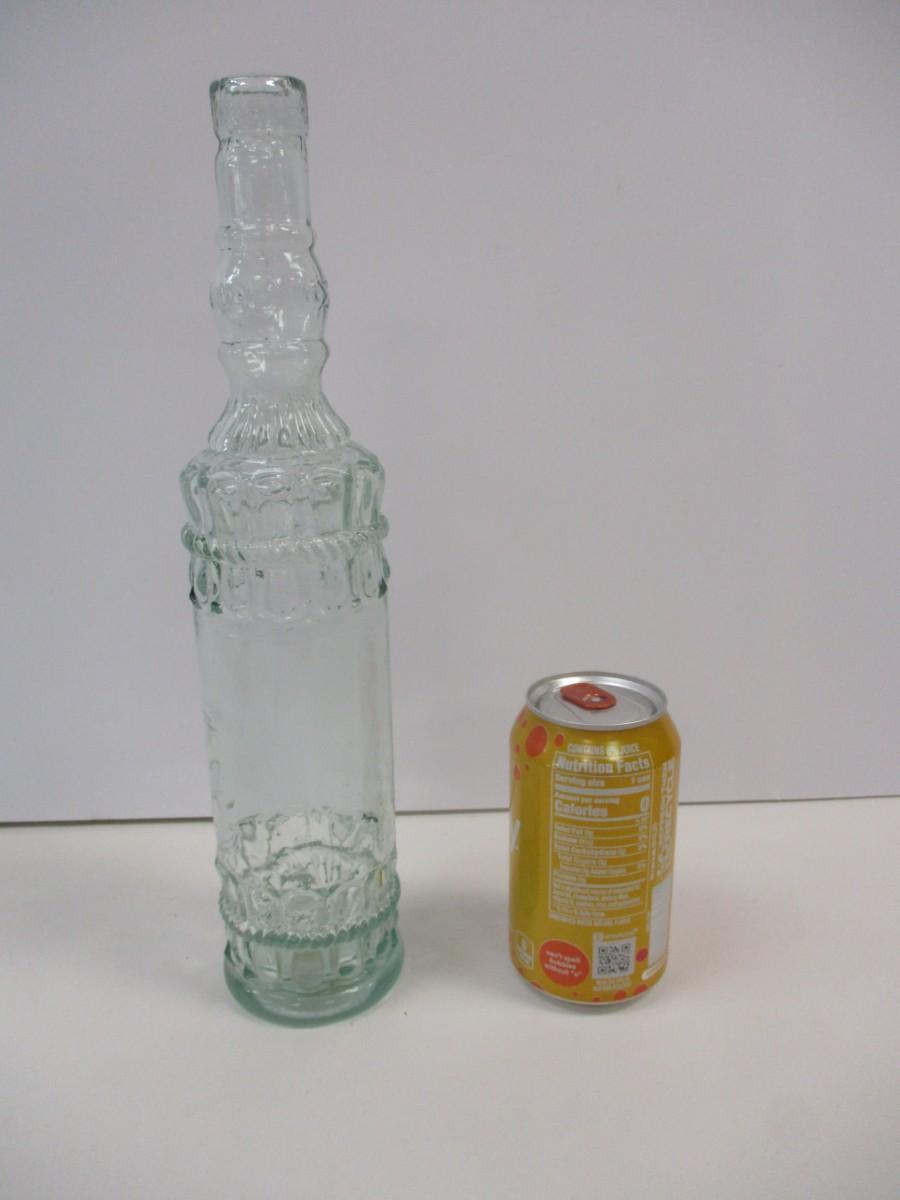 Vintage Decorative Collectible Green Pressed Glass Bottle 13 1/2" Tall