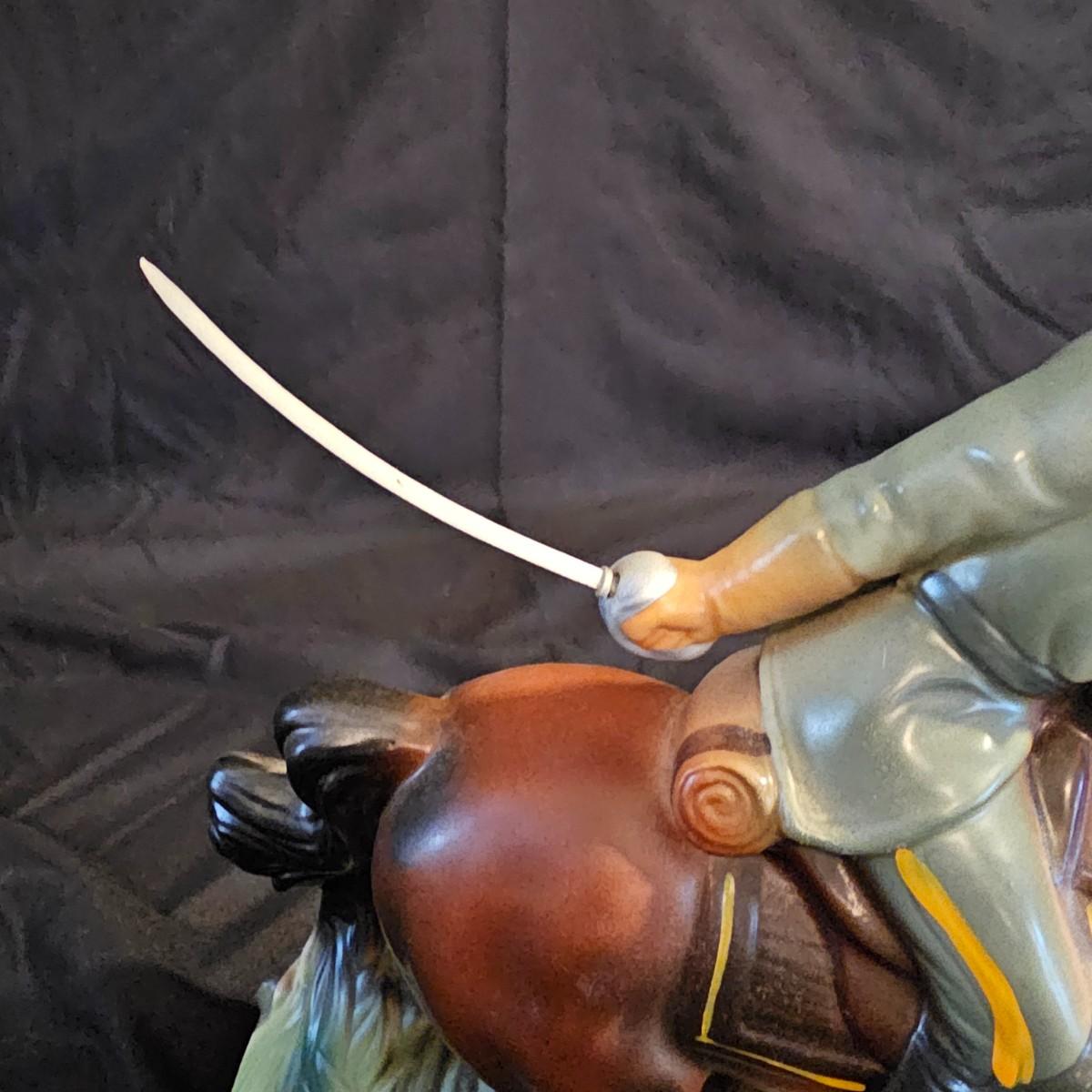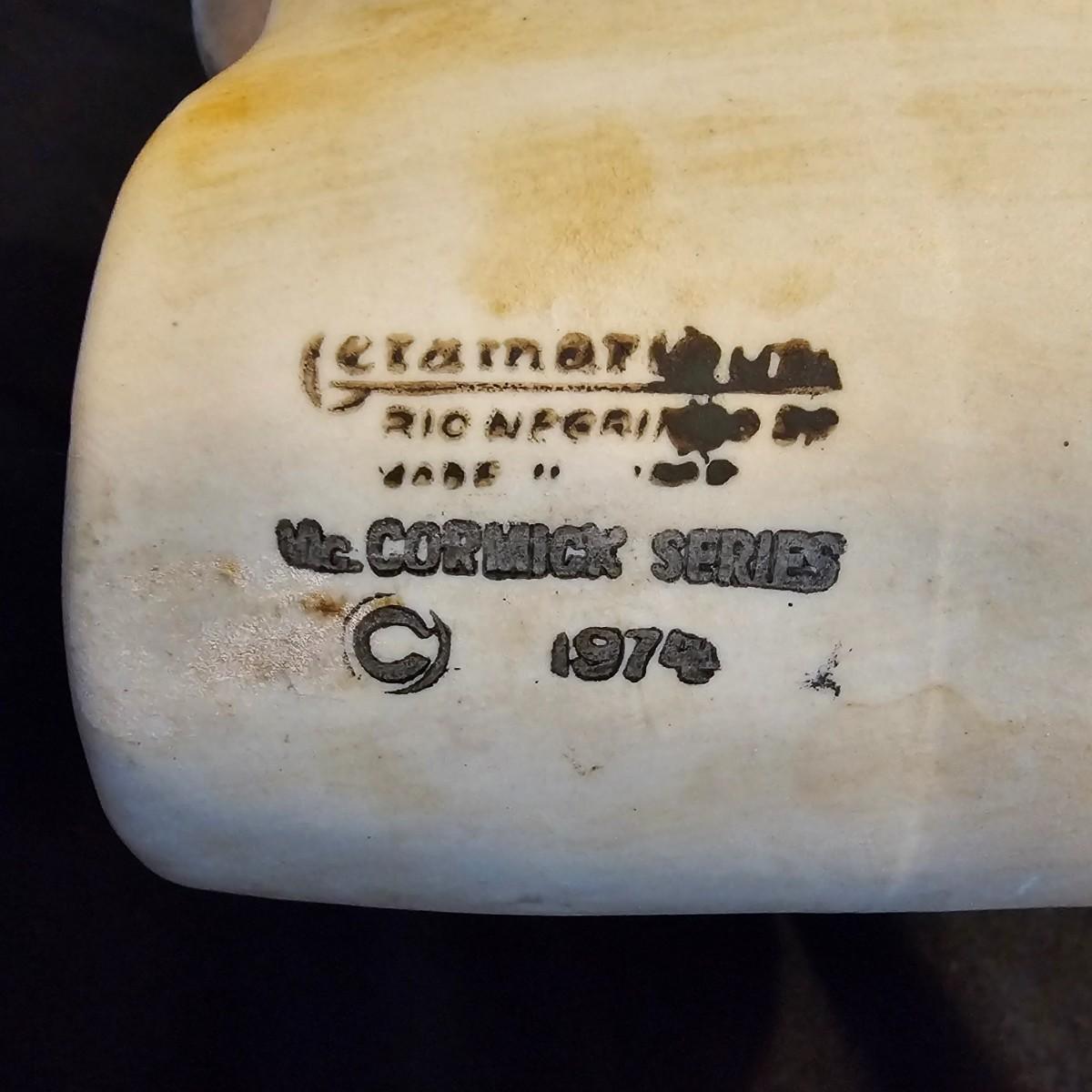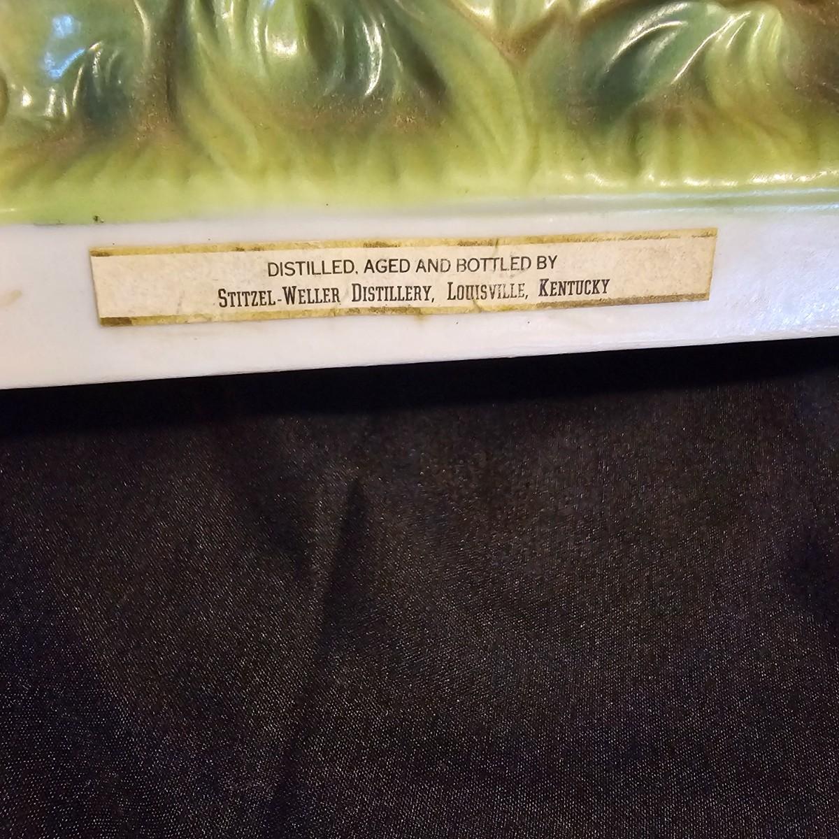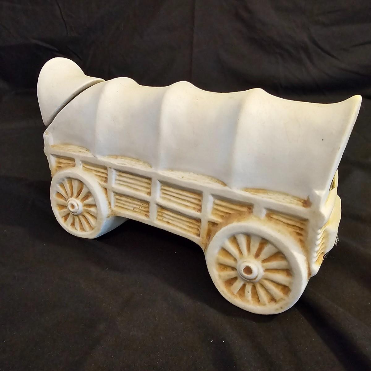 Three very distinctive commemorative whiskey decanters. Rebel Yell is soldier on horseback with saber, measures 10" x 3.5" x 9"H. Oklahoma Sooners wagon is 9.5" x 4" x 5.5"H. Pearlized shell is 7" x 3" x 9.75"H. All decanters are empty. See photos for details. Shipping available.