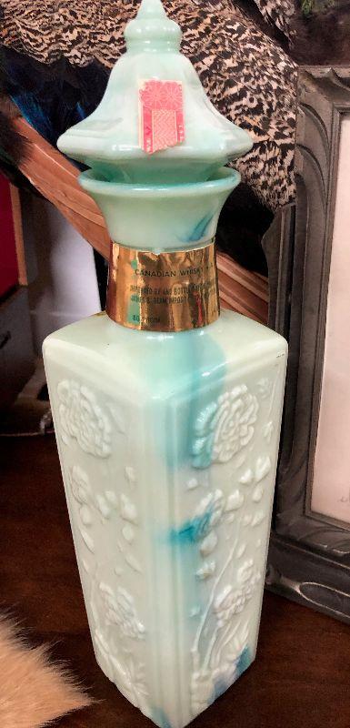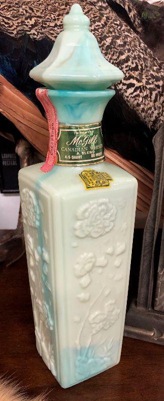 Once full of McGill Canadain Whiskey here is a decorative slag glass decanter from the 1960's...