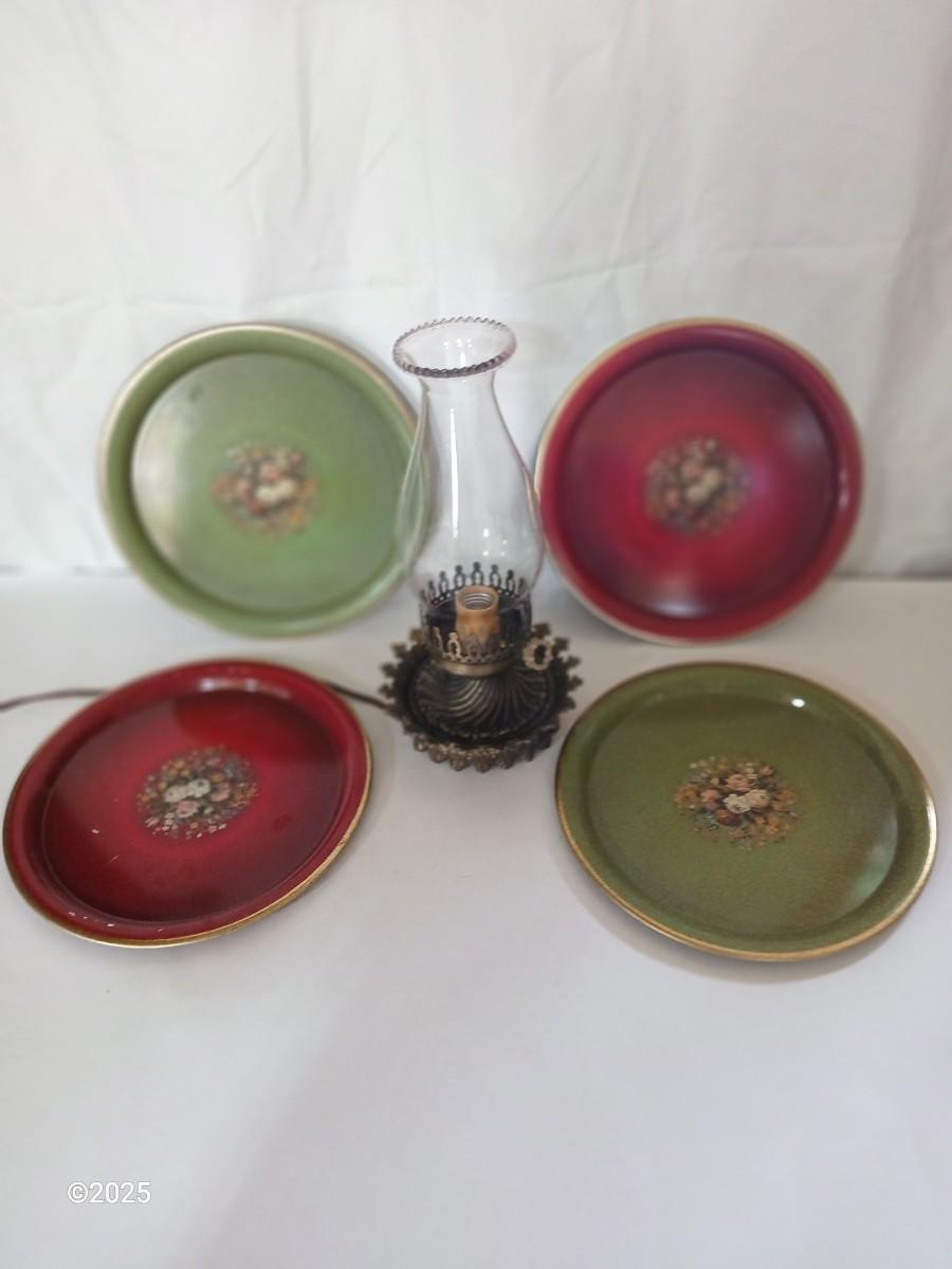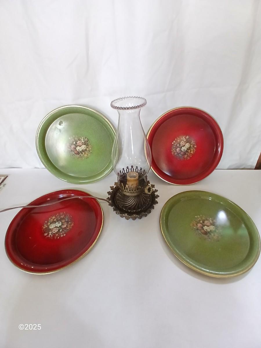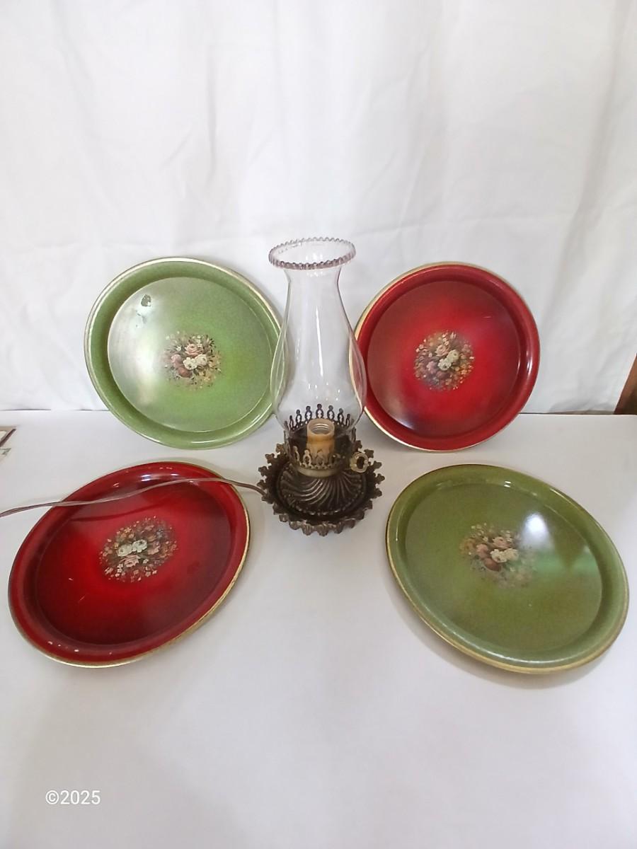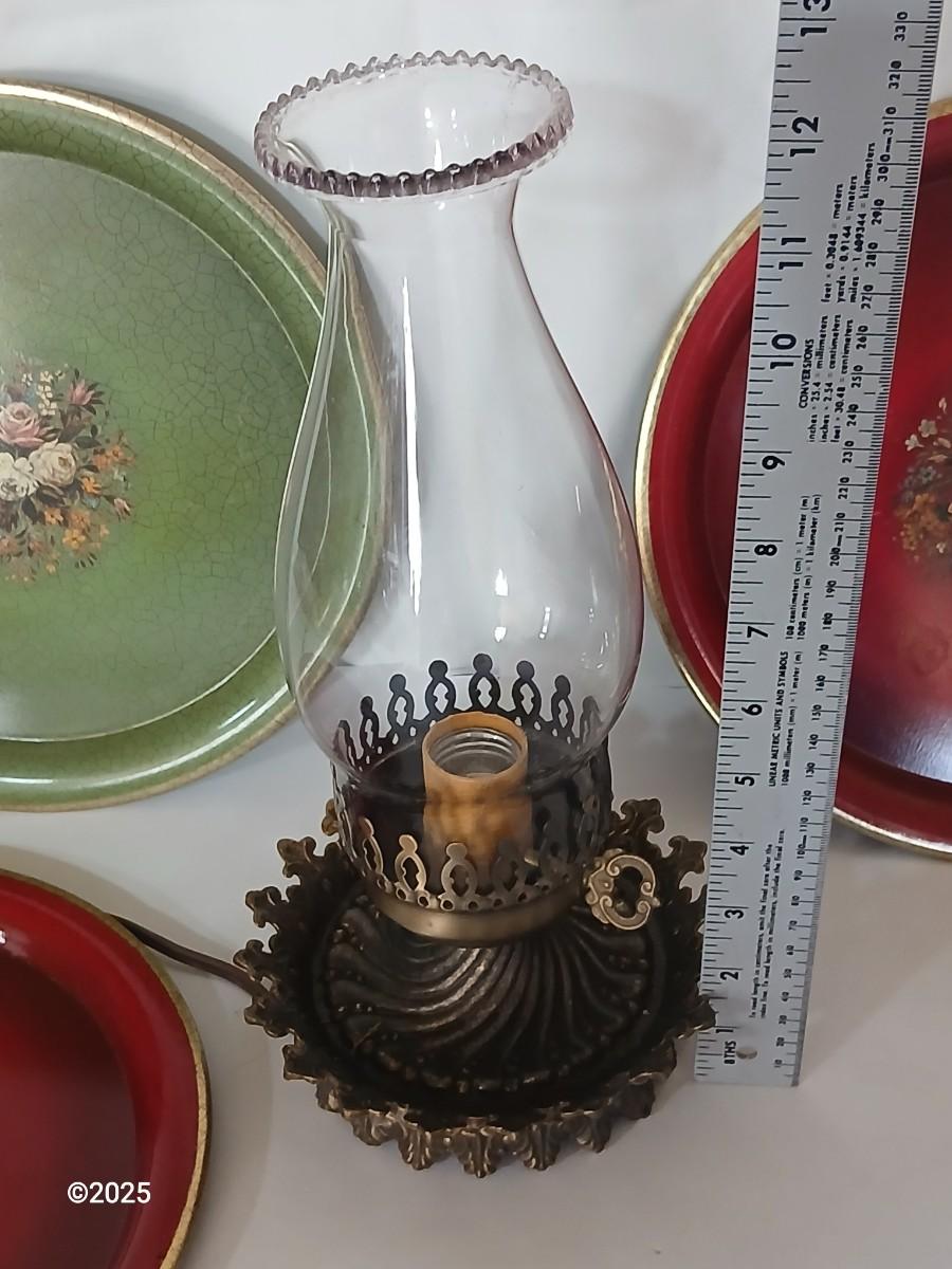 Vintage Decorative metal made in England Plate Set & electric Hurricane Lamp