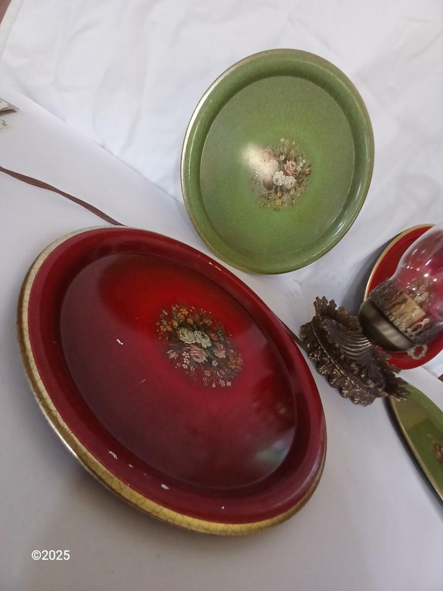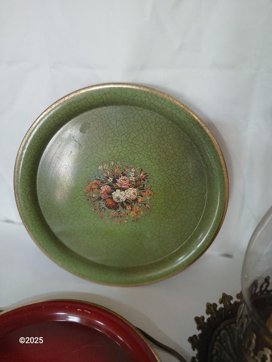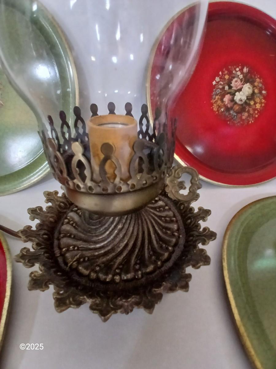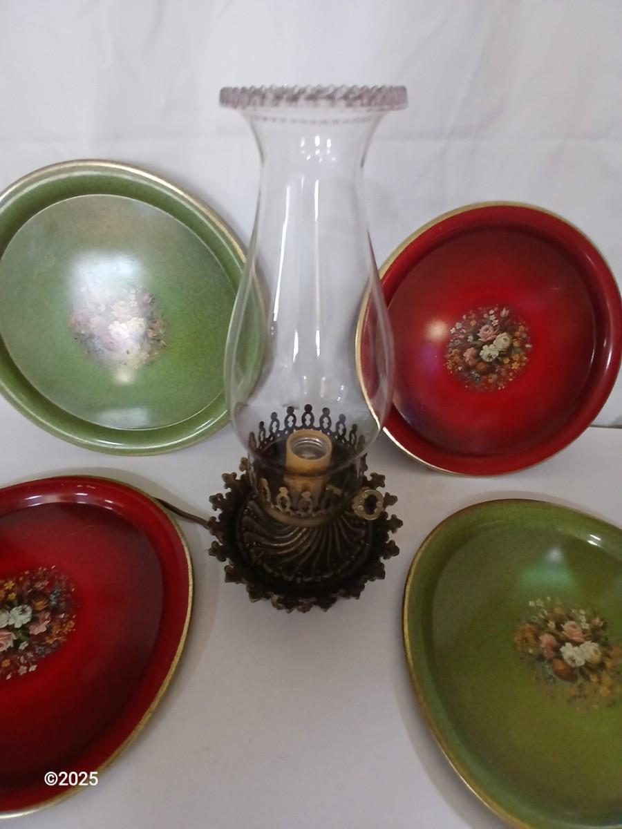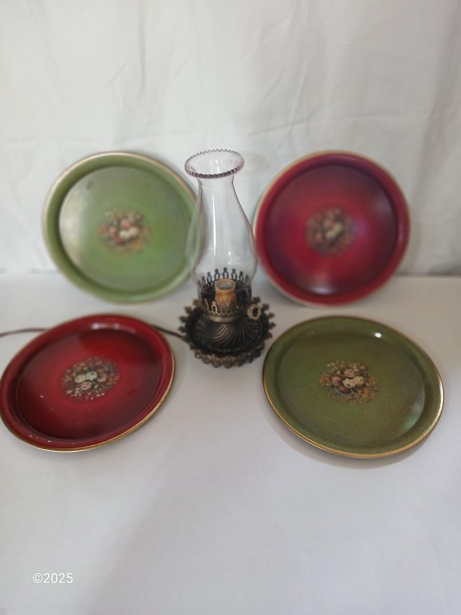 Vintage Decorative metal made in England Plate Set & electric Hurricane Lamp