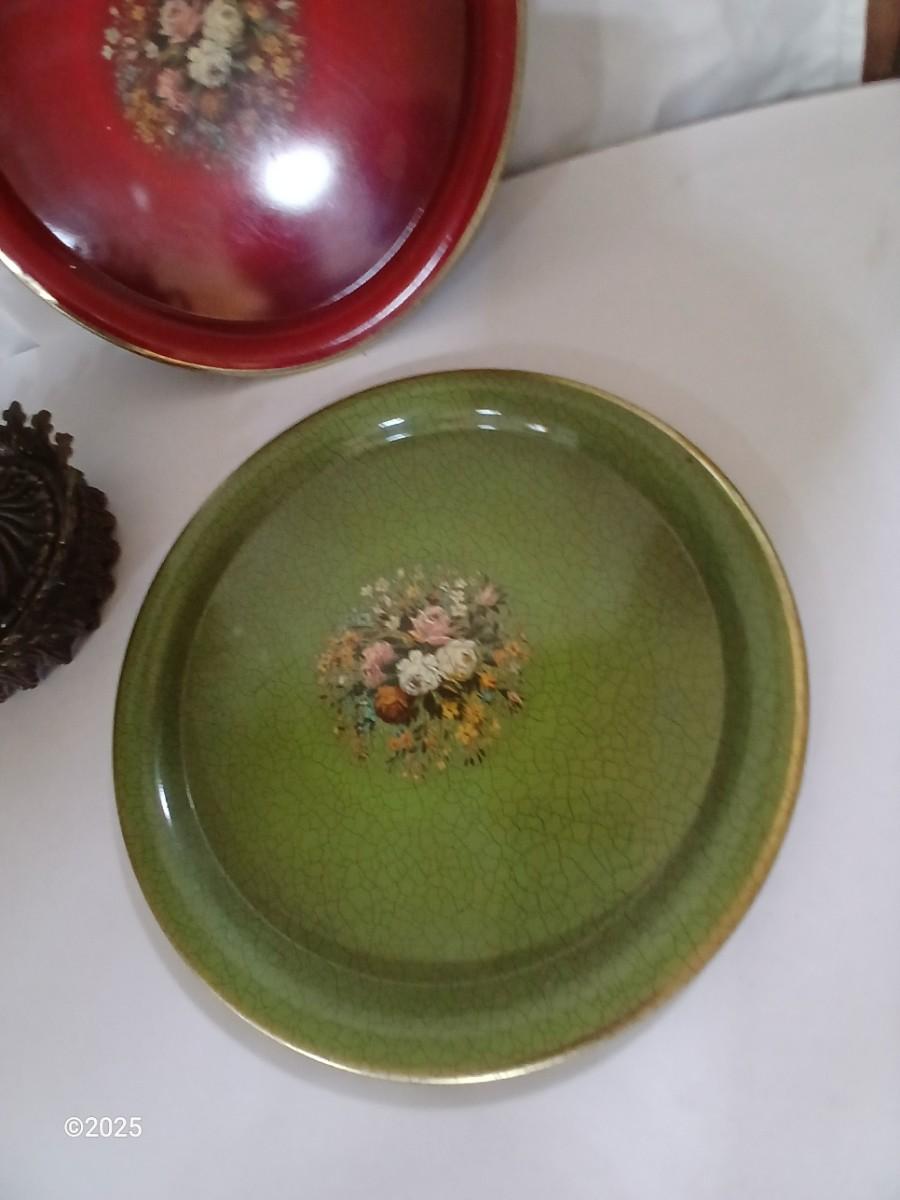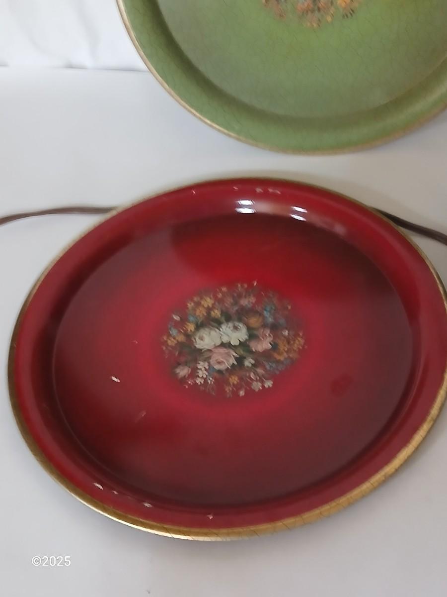 Red and Green enamel plates with crackled lacquer effect