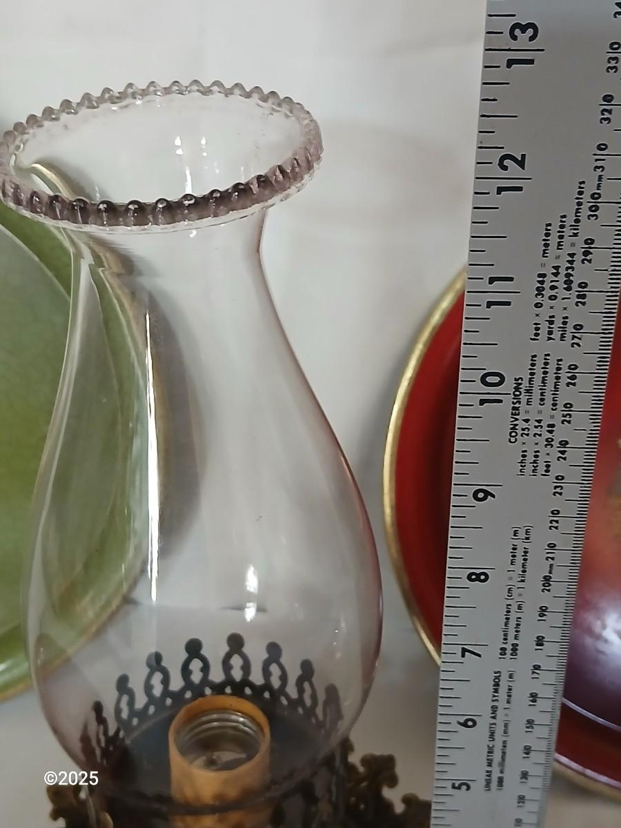 Glass electric hurricane lamp chimney with ornate brass-tone base