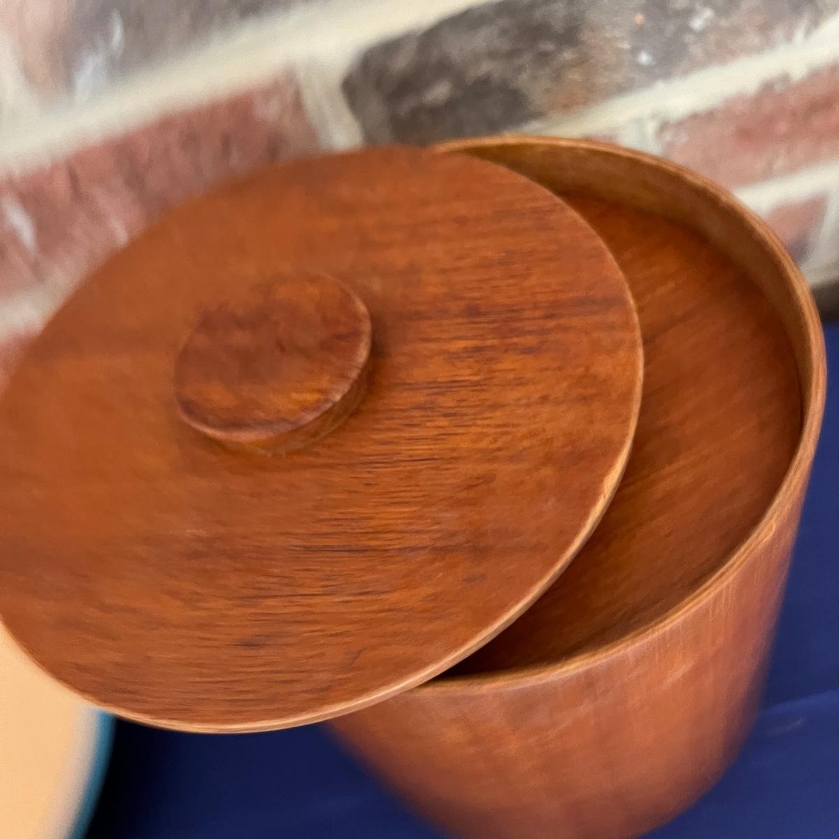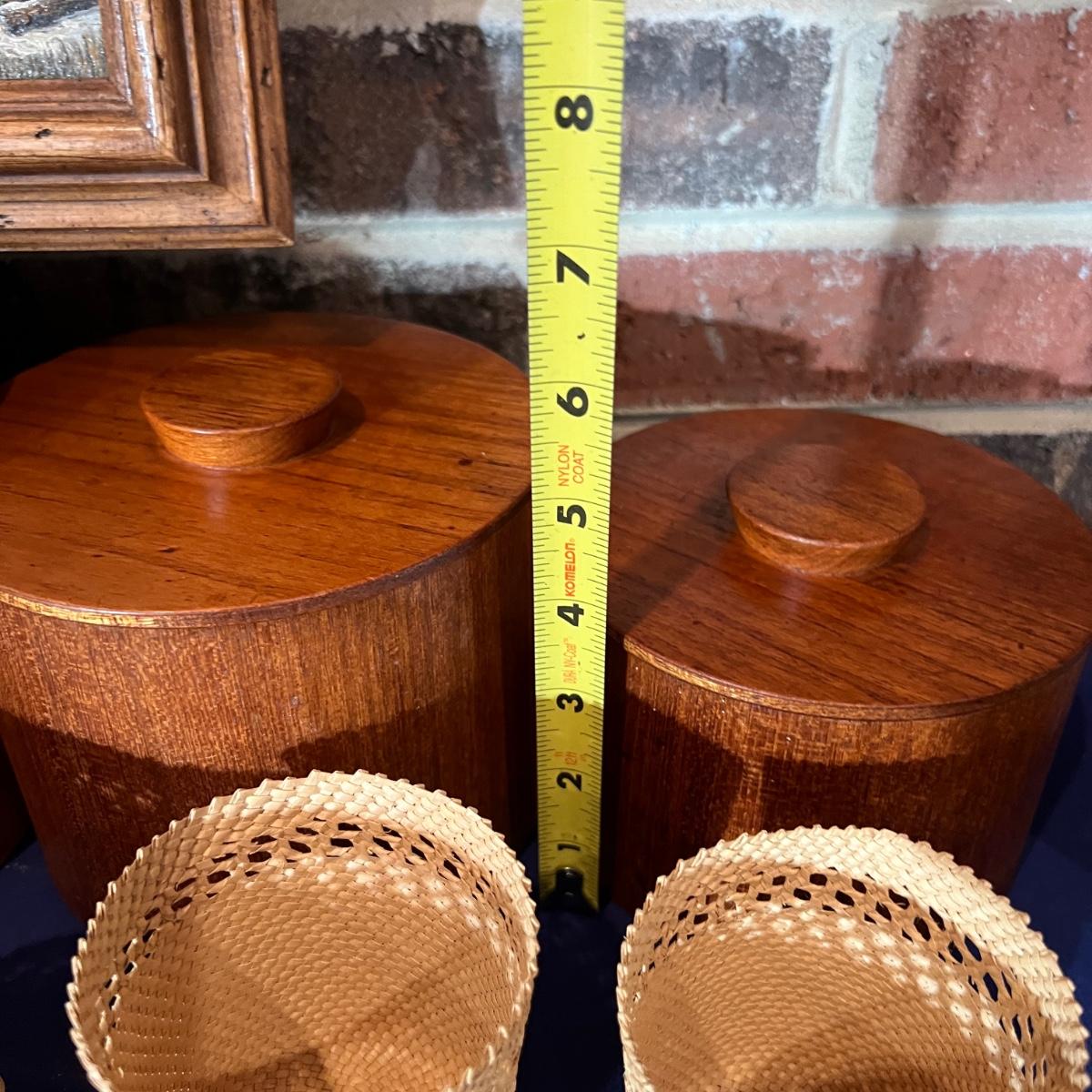 All 4 of the Teak nesting buckets have the lids. Buying "as is - as found" in this wonderful estate. See ALL PHOTOS for content, condition, & dimensions. NEVER a Buyer's Premium or Credit Card Fee added.