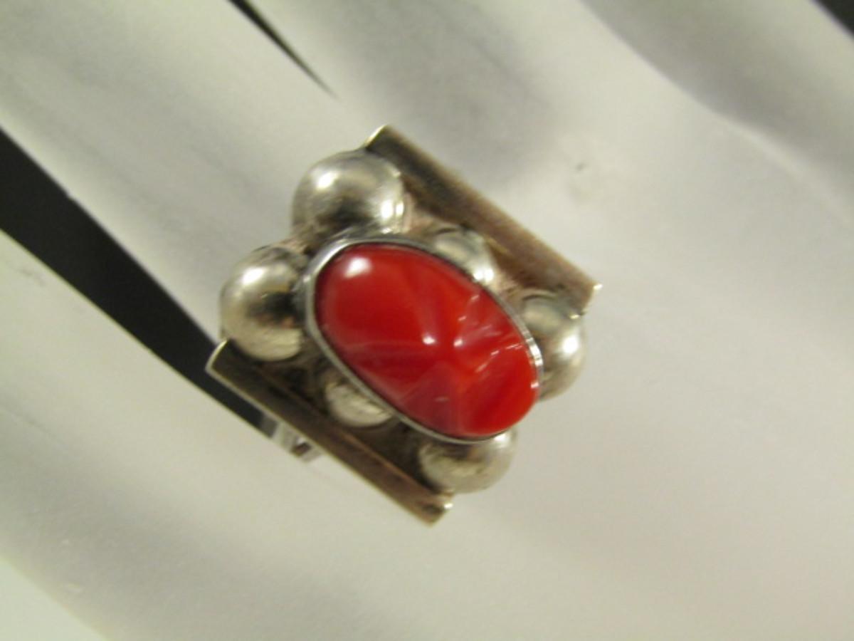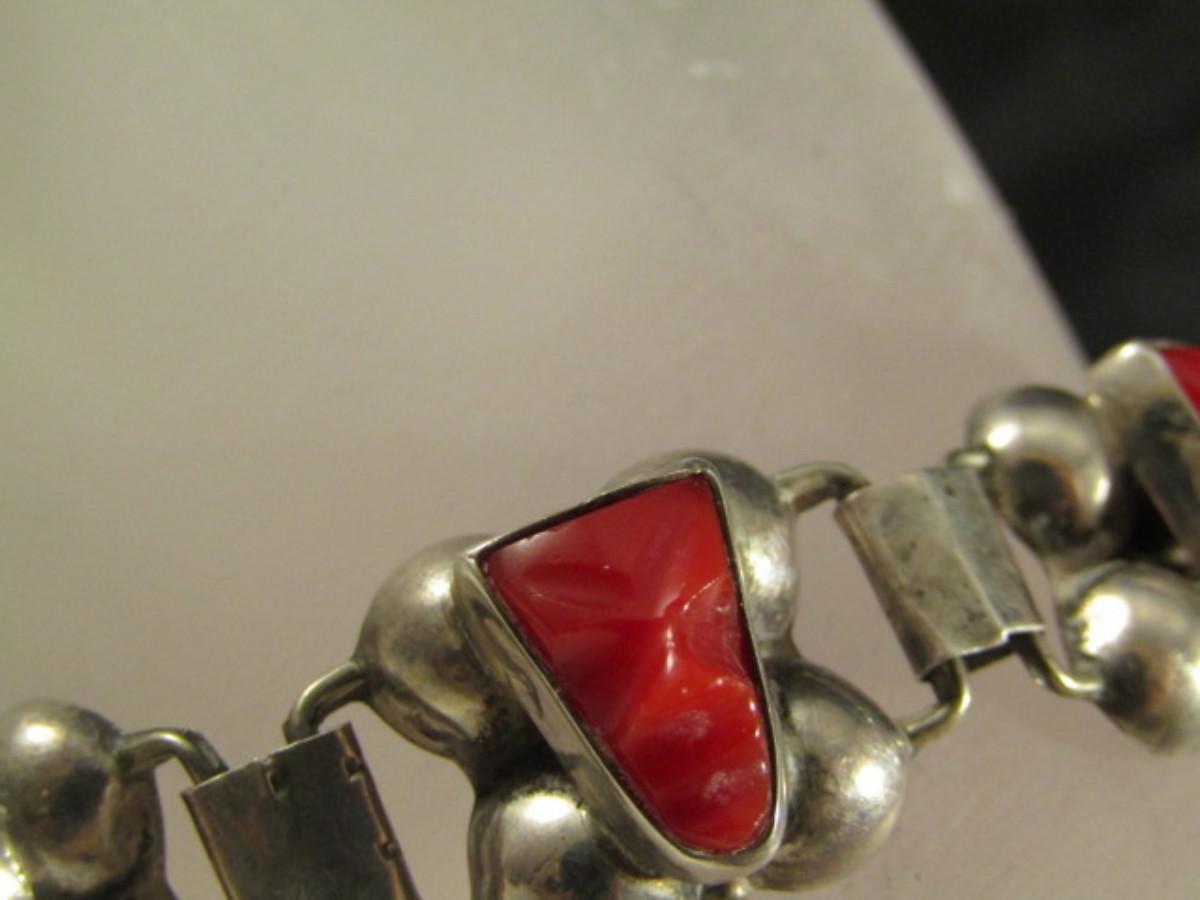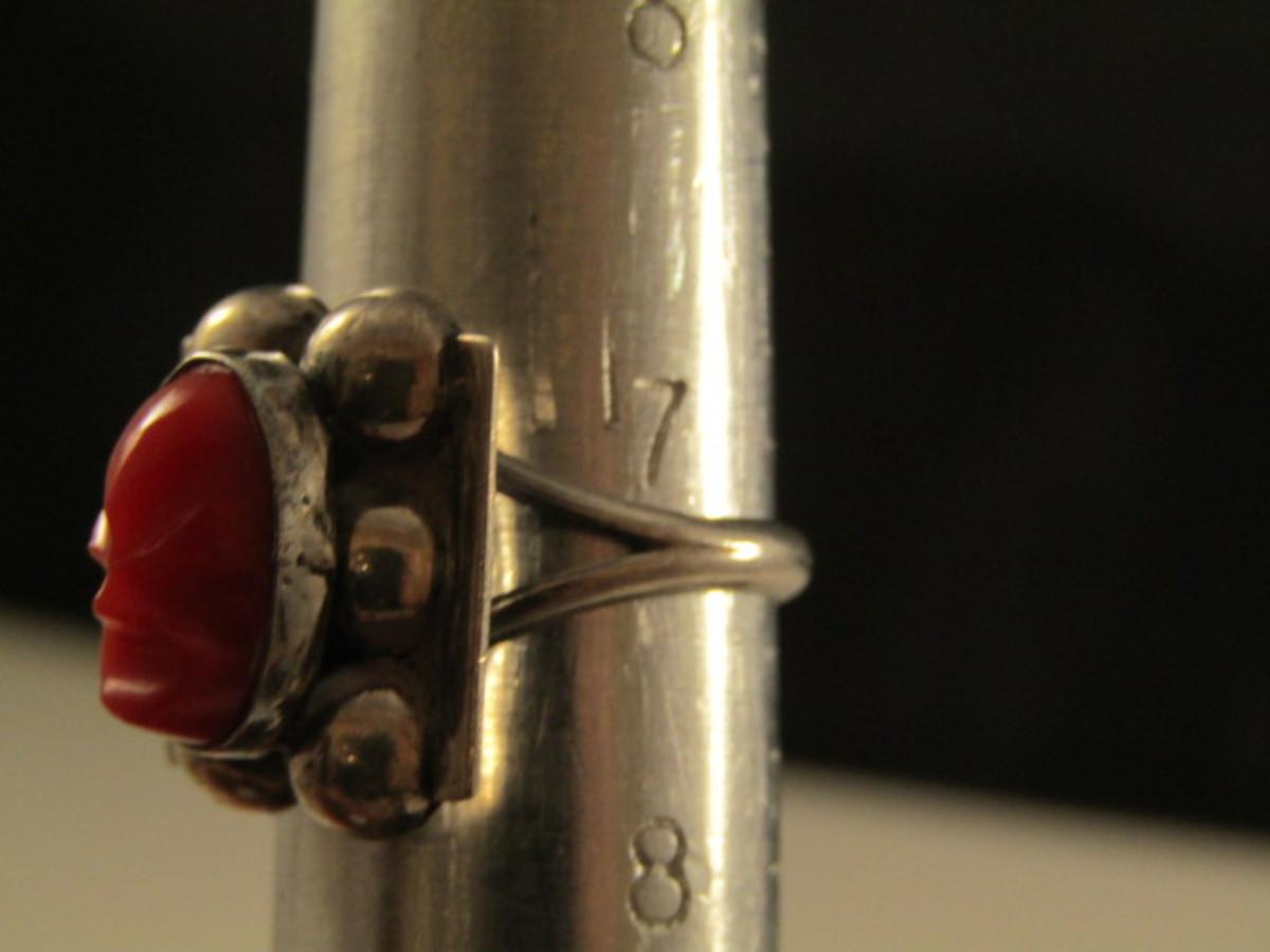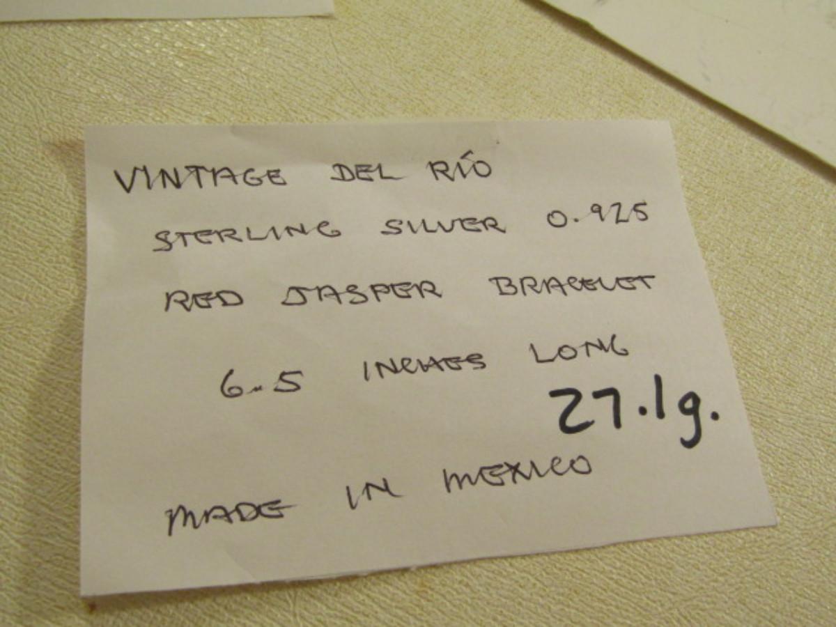 Vintage Del Rio Sterling Silver and Red Jasper Aztec Mask Design Bracelet and Ring Set- Approx 27.1 Grams (#22). Ring is approx size 7 1/2. Bracelet is approx 6 1/2" long.