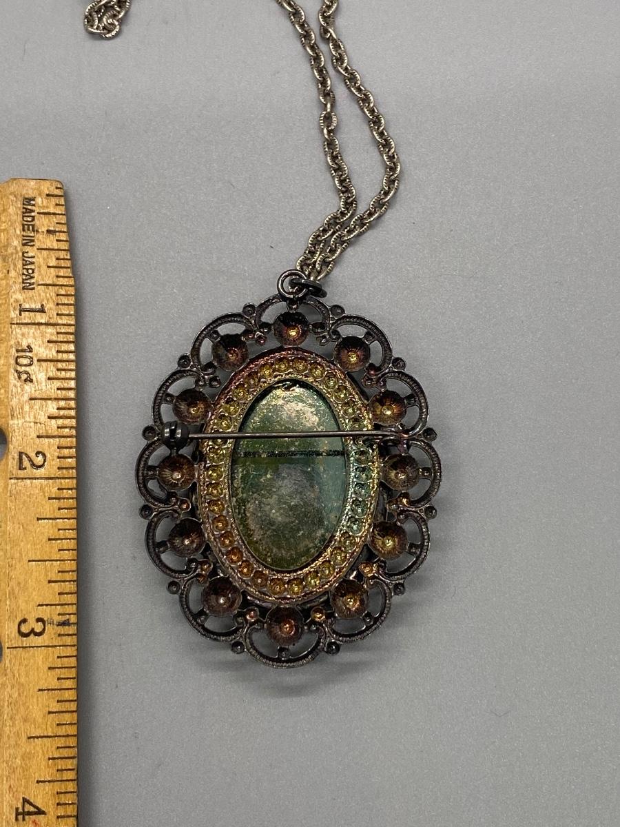 Vintage Delft Windmill Ceramic Painted Medallion Brooch Pendant Necklace