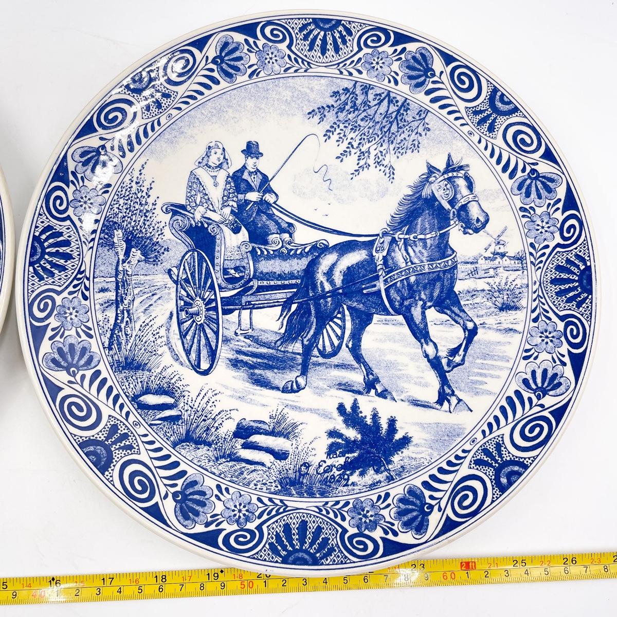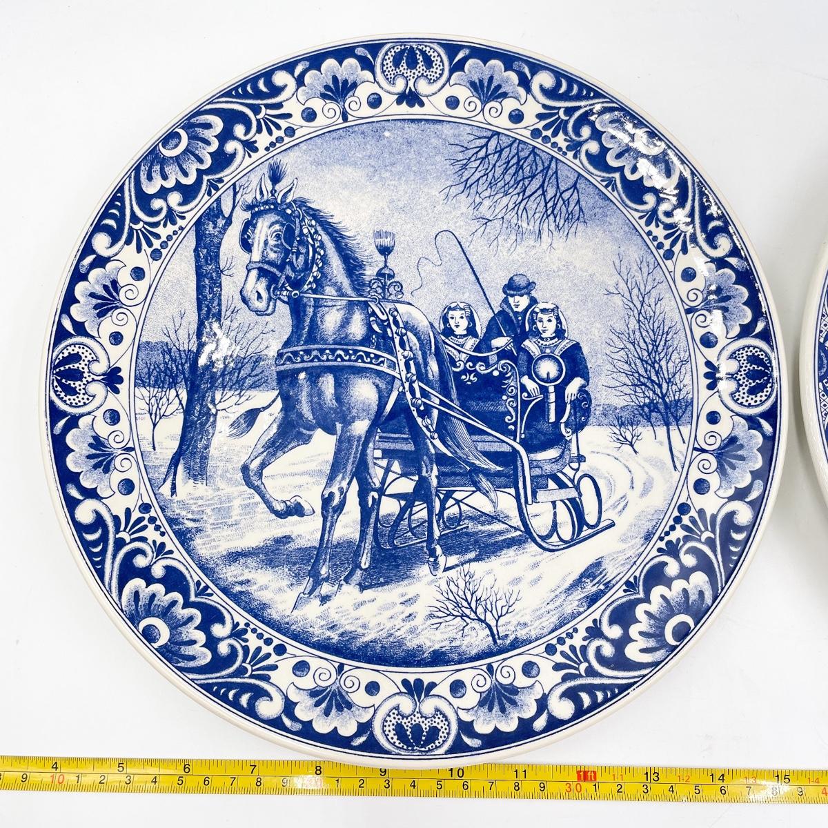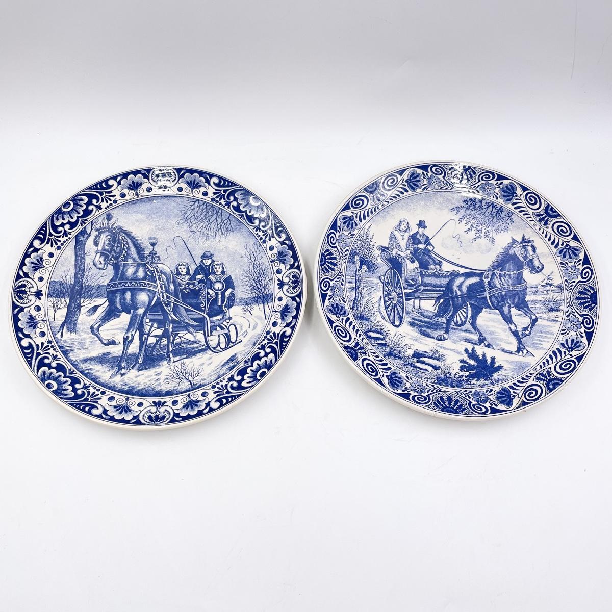 VINTAGE “DELFTS BLAU” DELFTWARE HORSE & CARRIAGE DECORATIVE PLATES