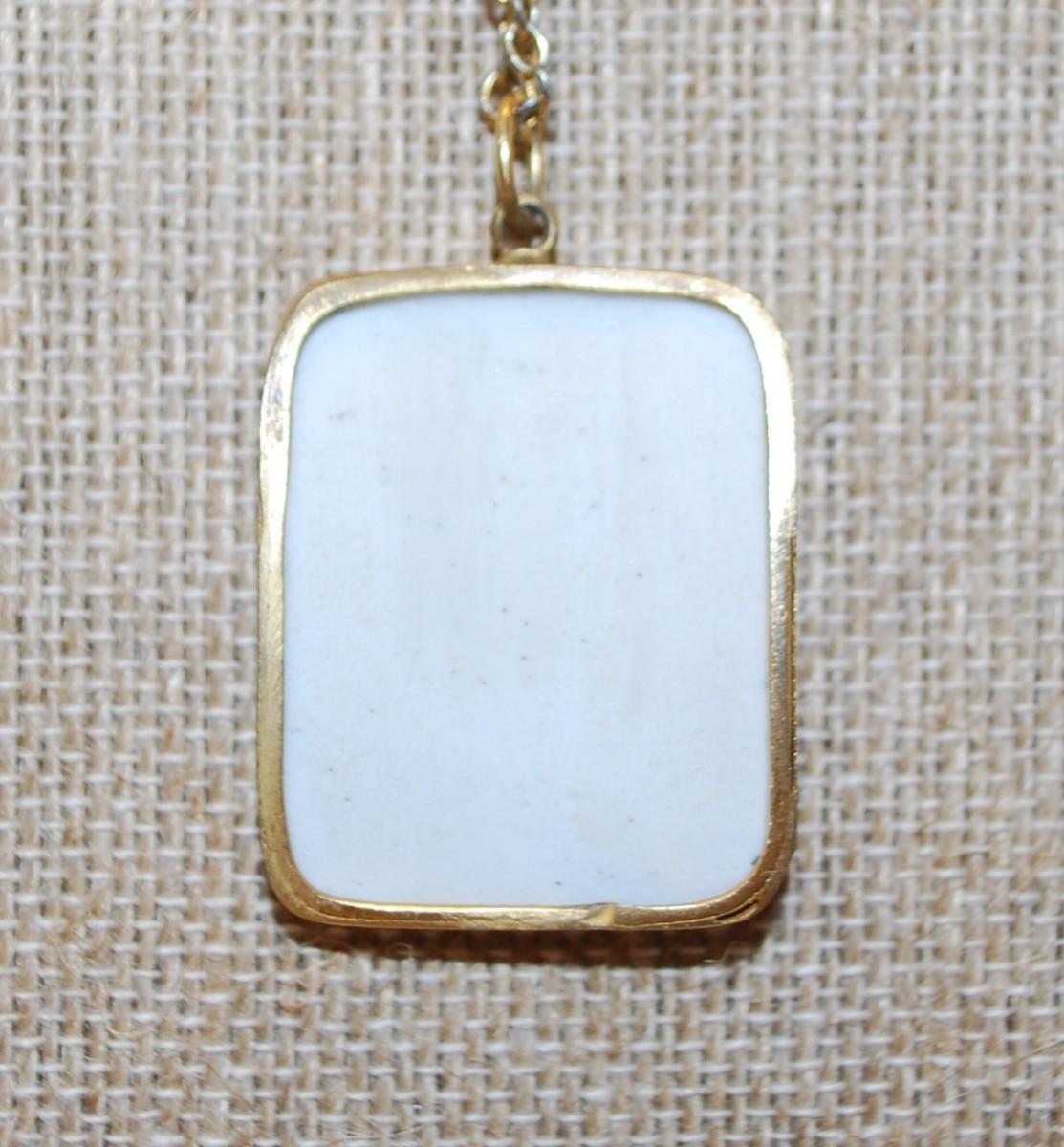 Vintage "Delft-Style" Blue & White PENDANT (1¼" x 1") on a Gold Tone Necklace Chain 22" L