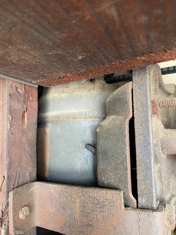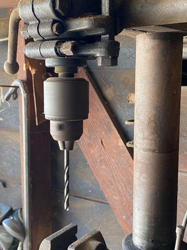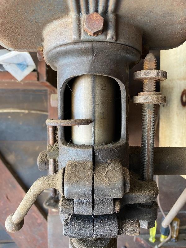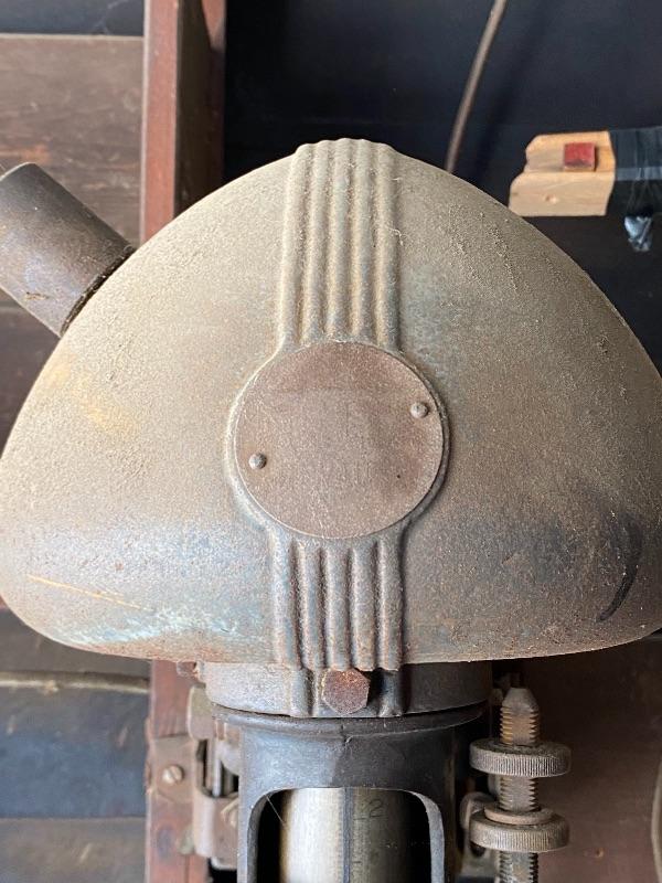 Vintage Delta DP 220 table top drill press. Tested and works. Belt driven. Cord is taped at plug, may need to be replaced for safety. Everything seems to move freely, just a bit dusty/dirty from garage.