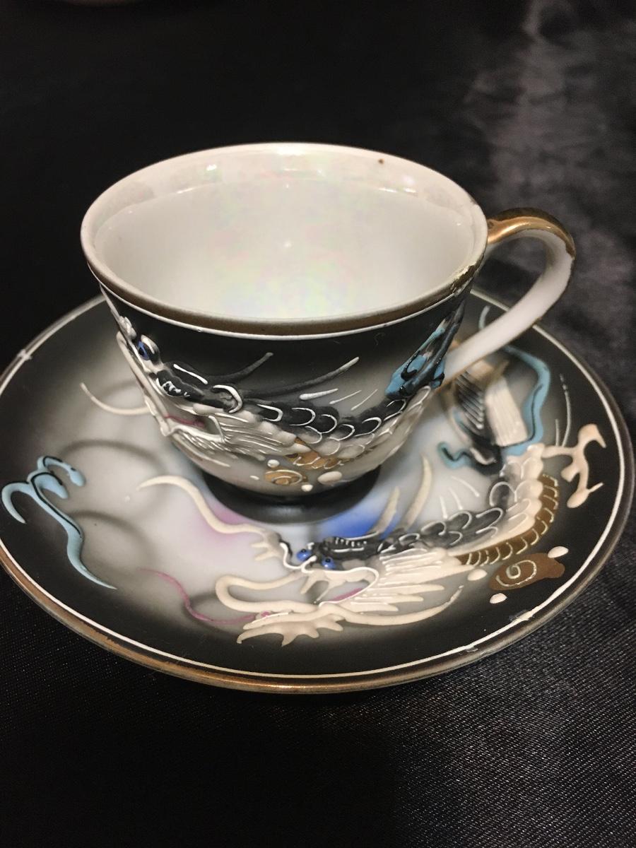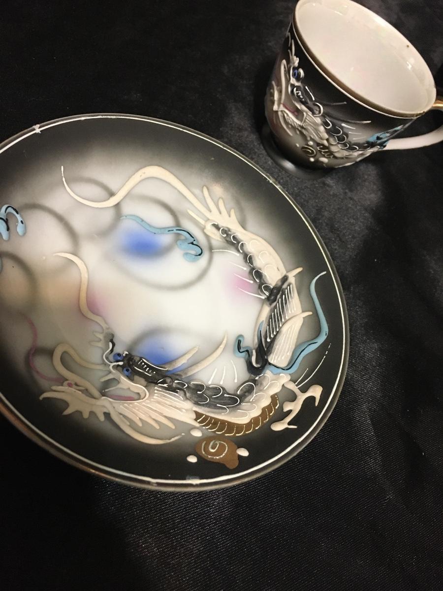 Vintage Demitasse Dragonware Porcelain Tea Cup & Saucer -Hand Painted Japan