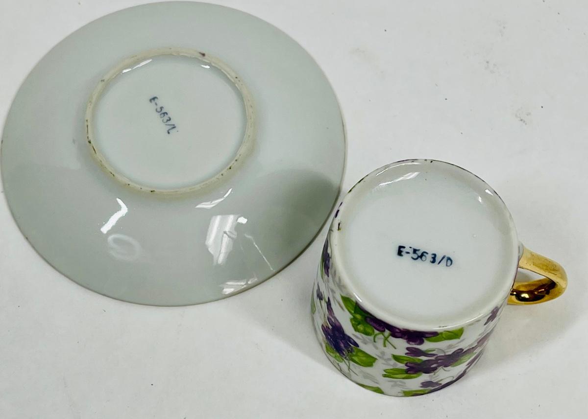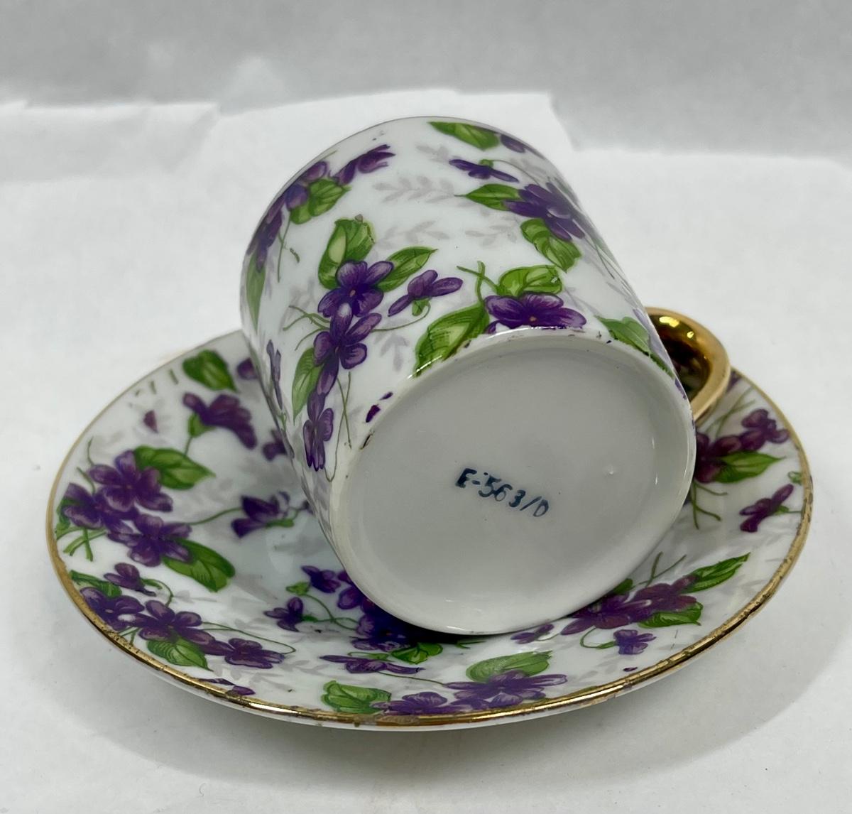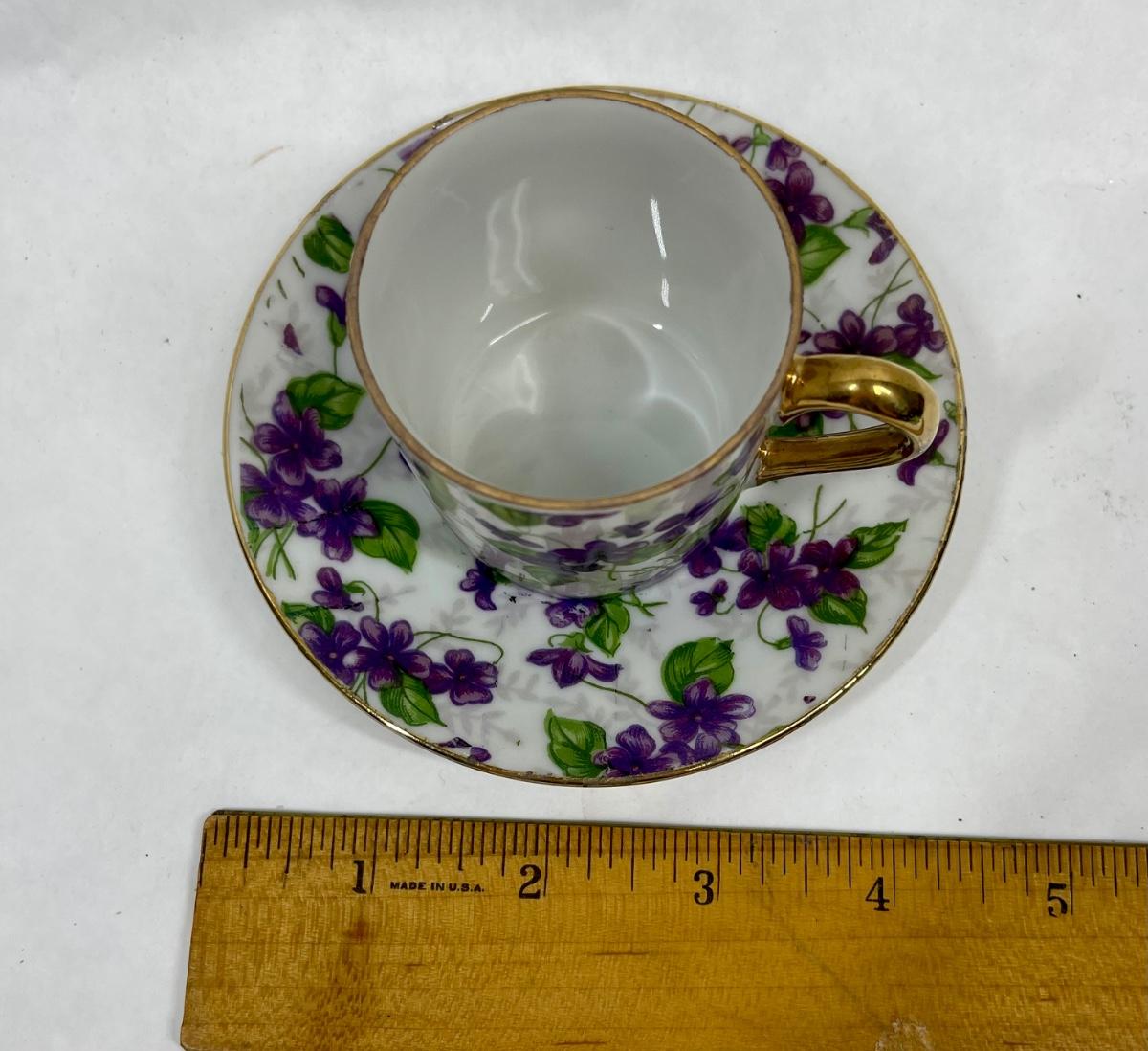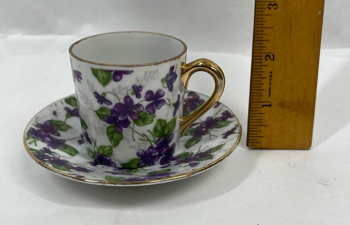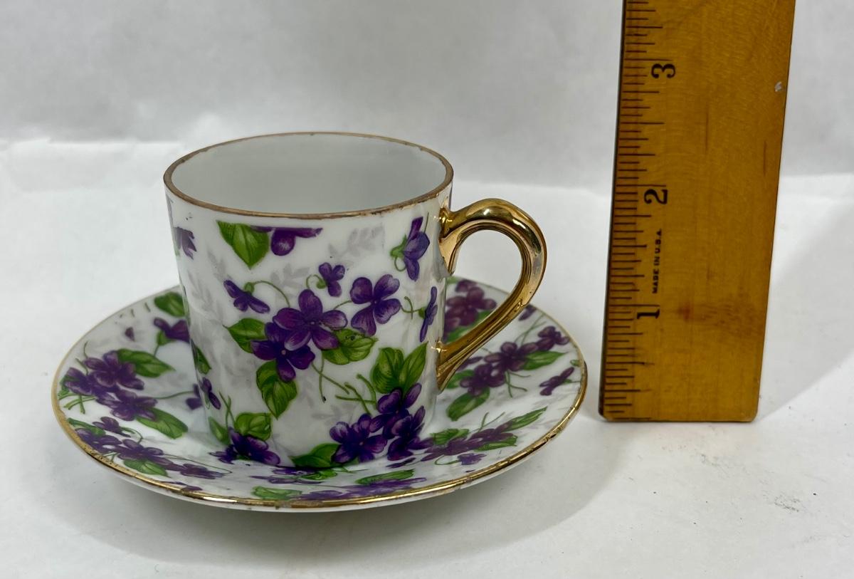 Vintage Demitasse Teacup & Saucer Purple Violets with Gold trim Inarco Japan