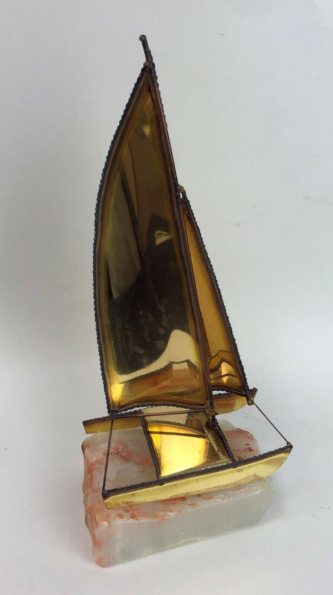 vintage Demott Brass Sailboat Sculpture with Onyx Base